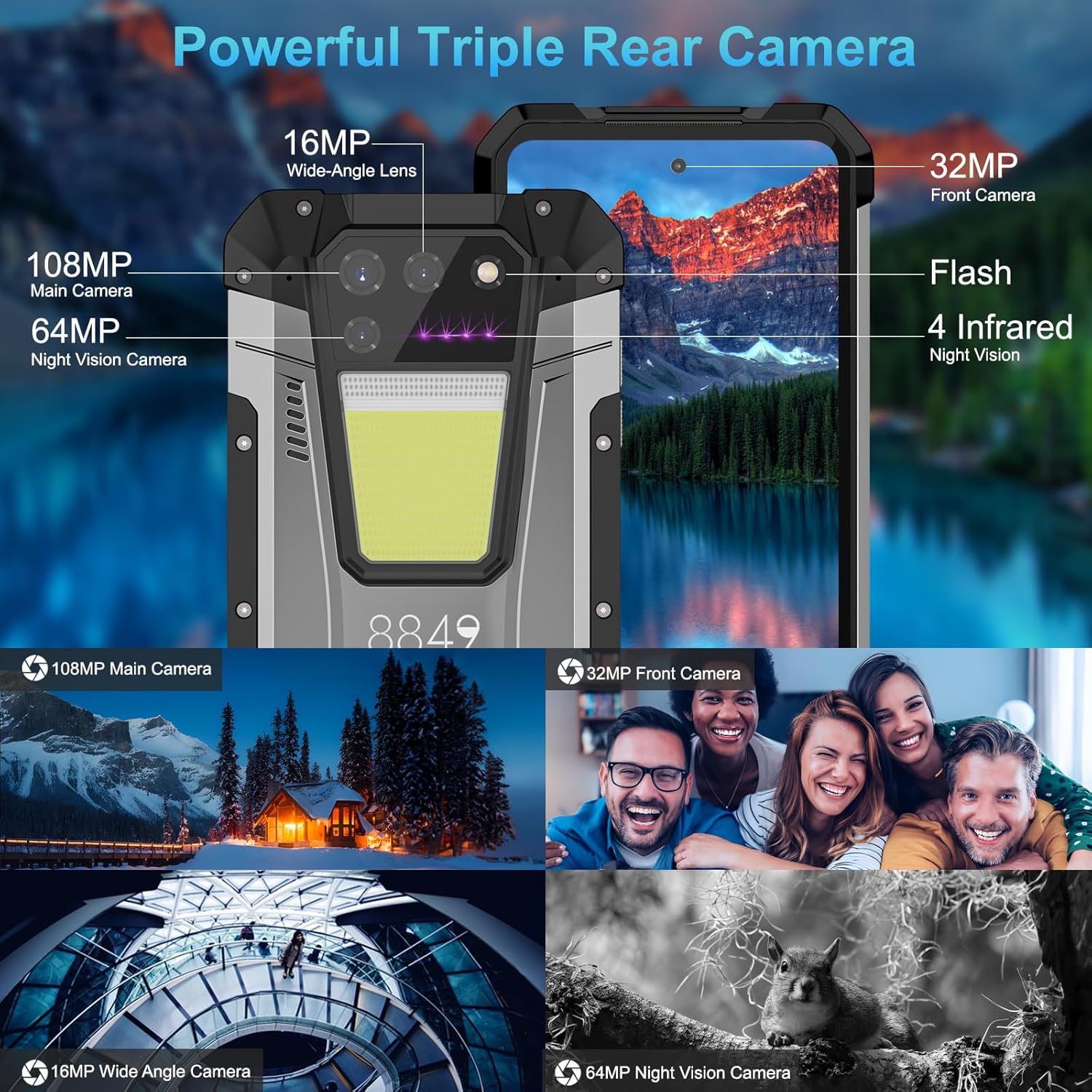 About this itemn?Dual 4G Rugged Smartphone with Projector?8849 Tank 2 rugged phone with projector provides clear and vivid images; It has 30lumens to 40lumens brightness and projection distance is up to 22.96ft; 1280*720 out resolution,16:9 aspect ratio, 1.2:1 throw ratio; 80000:1 sequential contrast; And the focus & auto keystone correction make you get better viewing experience; The projection range will be changed according to the distance; Easy to carry, no need to worry about the projection siten?15500mAh Battery & 66W Fast Charging?Tank 2 unlocked rugged smartphone equipped with 15500mAh battery will provide a more durable usage time. Meanwhile, the rugged cell phone designed with OTG function doesn’t only work as a unlocked rugged android phones, also work as a power bank in emergency situations. Not only that, with 66W fast charging function to finish 100% charged about 2 hours. Whether it’s playing games or watching videos, you don’t worry about your phone running out of batteryn?24GB+512GB Dual 4G Rugged Phone?8849 Tank 2 Android 13 rugged smartphone with Helio G99 Octa-Core processor(6nm process/2.2GHz) will provide better operating experience for you. 24GB RAM( 12GB RAM+12GB adjustable RAM) ensures super-fast downloads, fast processing and low latency. With 512GB ROM and 2TB expandable storage, you can store more photos, videos and other files. Even if you are a gaming or photography enthusiast, tank 2 4G unlocked android phones can also meet your needsn?Versatile Lighting?8849 Tank 2 isn’t just a phone, it’s your outdoor companion. Tank 2 phone with 1200LM camping light that casts a luminous beam up to 98 feet, banishing darkness from campsites, trails, and emergency situations. Choose between cool or warm lights and switch between 5 modes like SOS, strobe, and full/half brightness for meeting your needs. Tank 2 is waterproof, shockproof, and dustproof, ready to conquer any adventure. Plus, it throws a warning signal lights for extra safetyn?Upgraded 64MP Night Vision Camera?8849 Tank 2 outdoor rugged phone with a 108MP main camera, you can capture images with remarkable clarity and detail; the 32MP front-facing camera supports beauty selfies, which makes you can enjoy beauty at any time; Of course, if you like night photograph, 8849 rugged cell phones unlocked with 64MP night vision camera can capture many beautiful moment that ordinary phones can’t capture. Meanwhile, 16MP wide angle camera for more sense viewn?360° Full Protection Rugged Smartphone?8849 Tank 2 outdoor rugged smartphone unlocked will provide 360°protection, such as waterproof, shockproof and dust-proof, with this designed, tank 2 Android 13 phone can withstand various harsh environments(NOTE: At 531g, the Tank 2 unlocked phone is indeed heavier than most mobile phones, but for outdoor enthusiasts seeking an all-in-one adventure companion, the weight is a worthwhile trade-off for durability and functionality)n?Support T-Mobile & Verizon Carrier?Tank 2 rugged phone unlocked only support T-Mobile and Verizon Carrier; For other Carrier, you need check the frequency bands,our smartphone can support frequency bands: GSM(GSM850/GSM900/GSM1800/GSM1900);C2K(BC0/BC1); WCDMA(Band1/2/4/5/6/8/19); FDD-LTE(Band1/2/3/4/5/7/8/12/13/17/18/19/20/25/26/28A/28B/66); TDD-LTE (Band34/38/39/40/41); if you still has any questions, Please confirm the carrier before purchasing, we will tell you how to use the some carrier