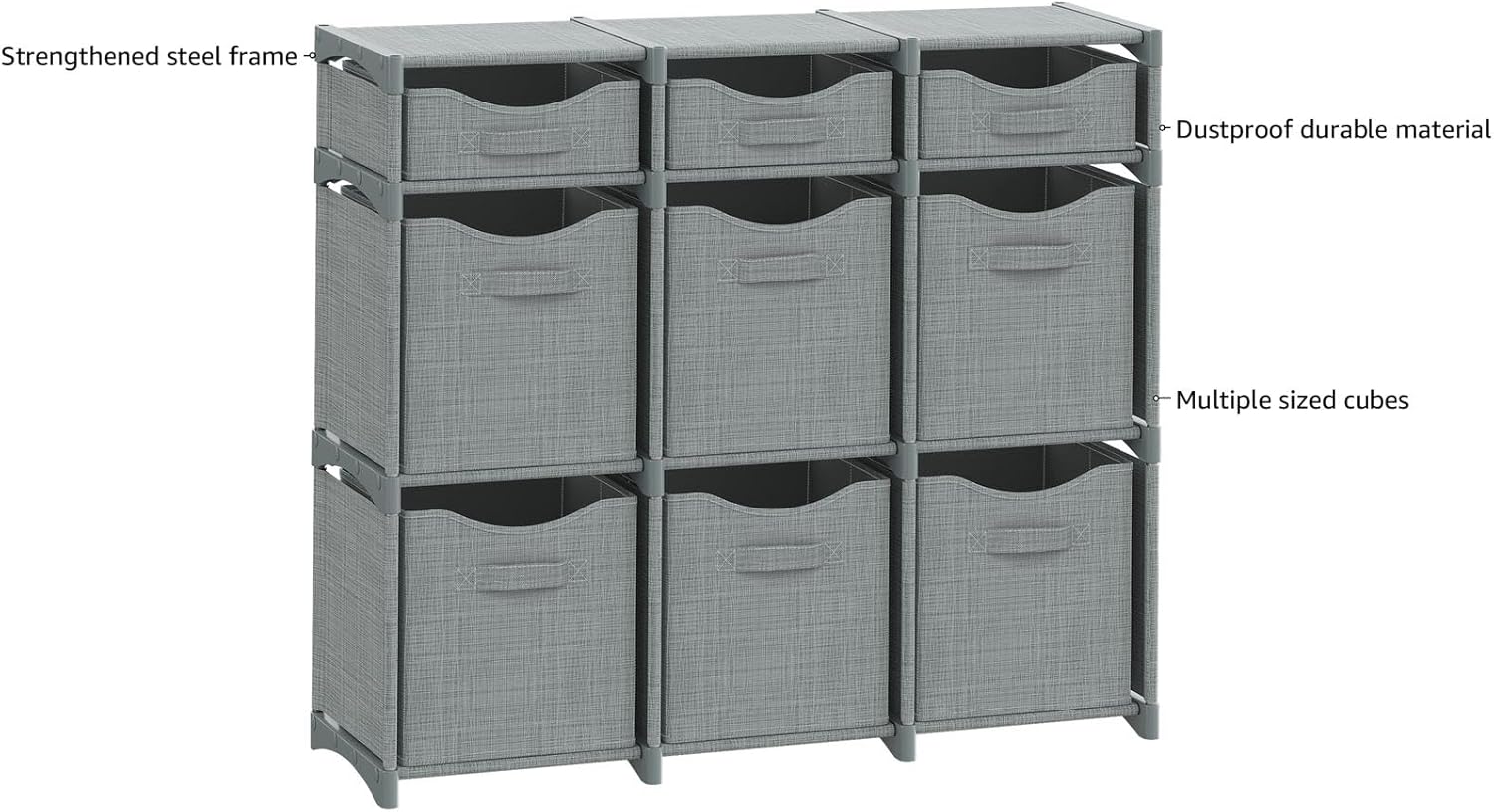 9 Cube Closet Organizers, Includes All Storage Cube Bins, Easy To Assemble Storage Unit With Drawers | Room Organizer For Clothes, Baby Closet Bedroom, Playroom, Dorm (Light Grey)