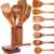 9 Piece Natural Teak Wooden Kitchen Utensil Set with Spoon Rest – Comfort Grip Cooking Spoons and Utensils Holder