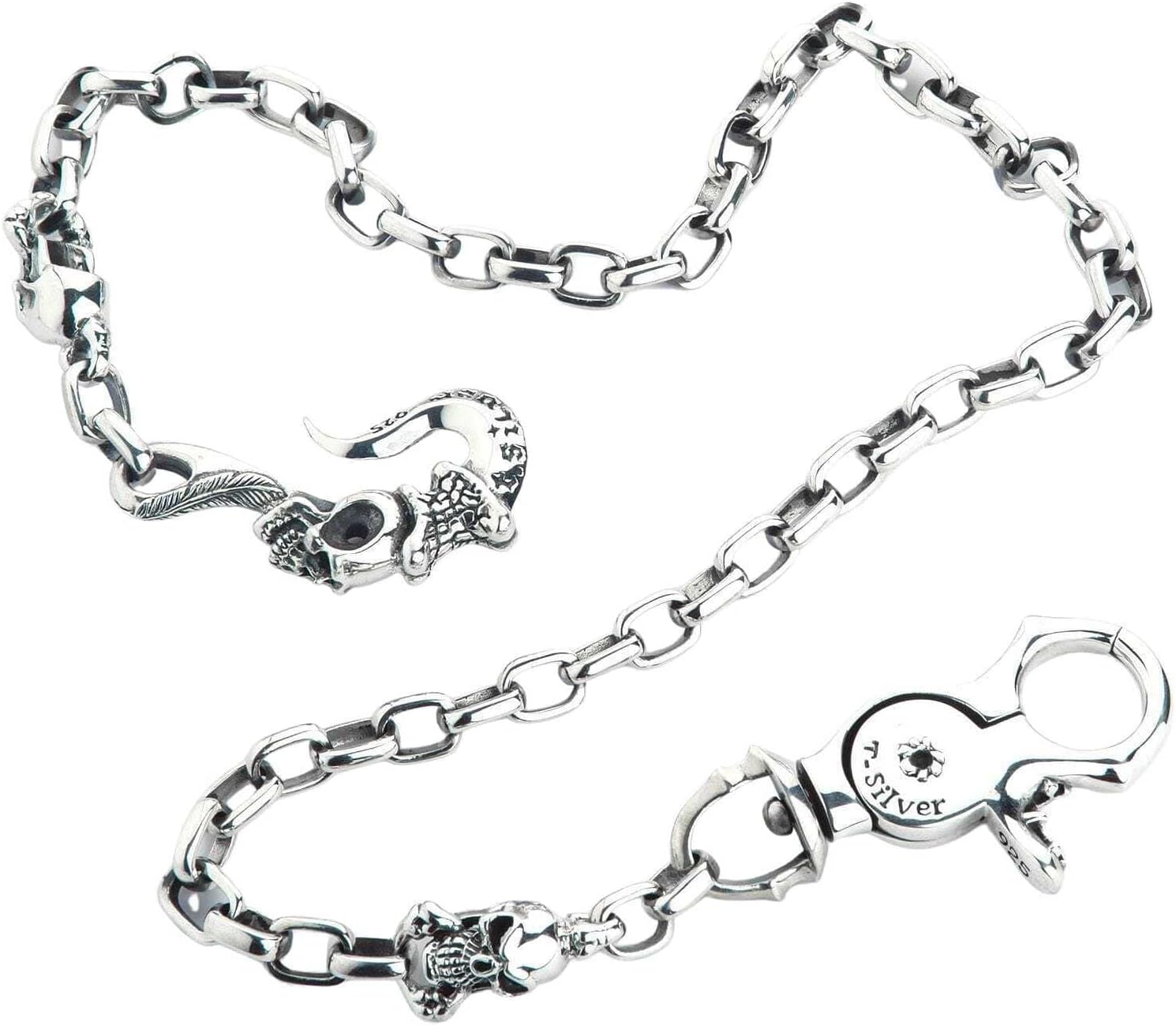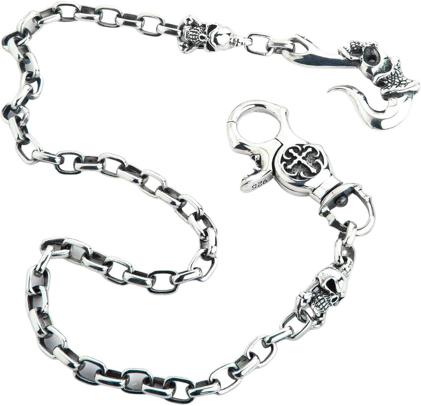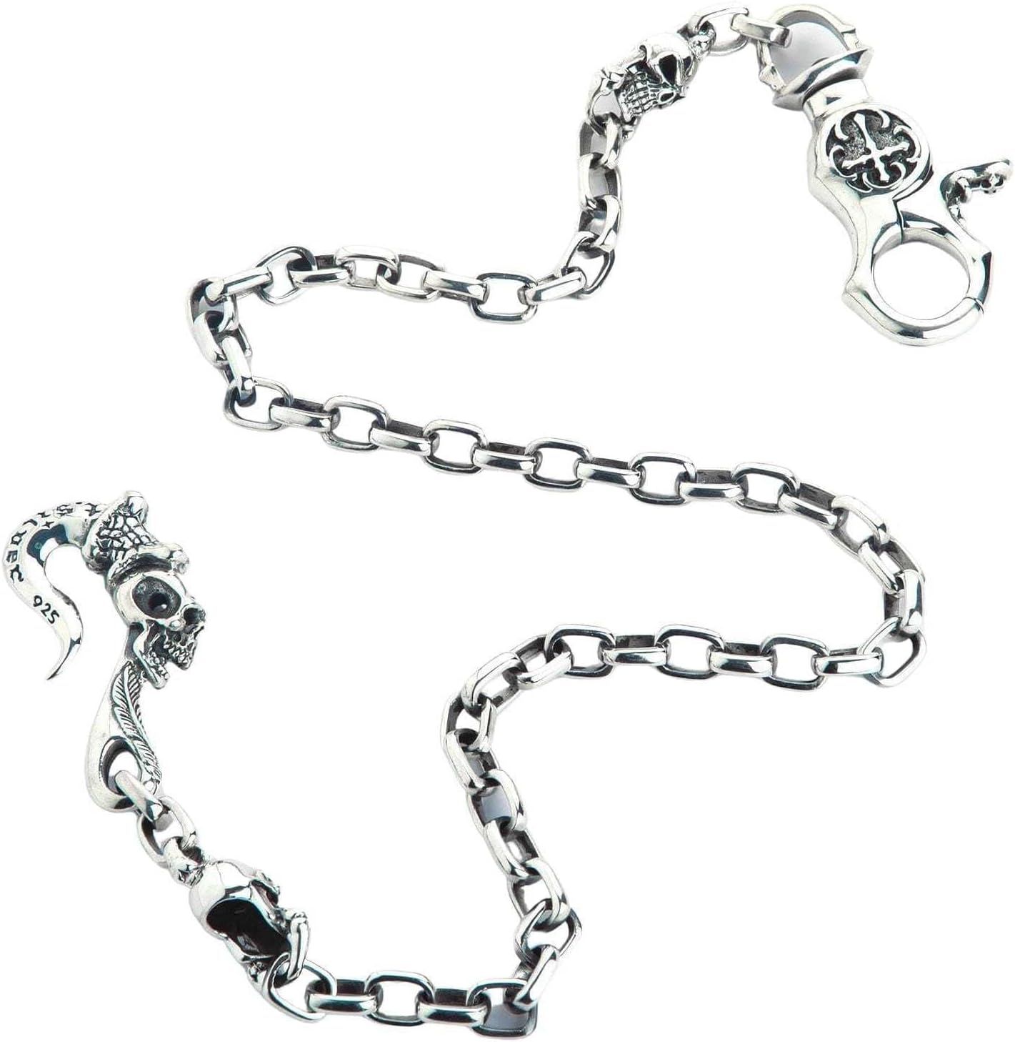 925 Sterling Silver Tribal Gothic Skull Wallet Chain Men’s Biker
