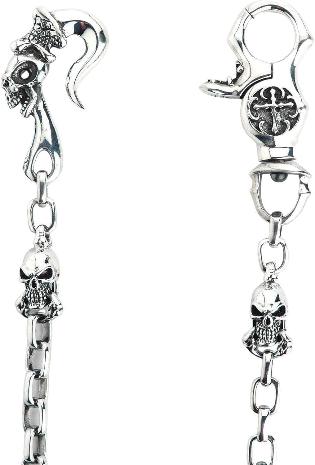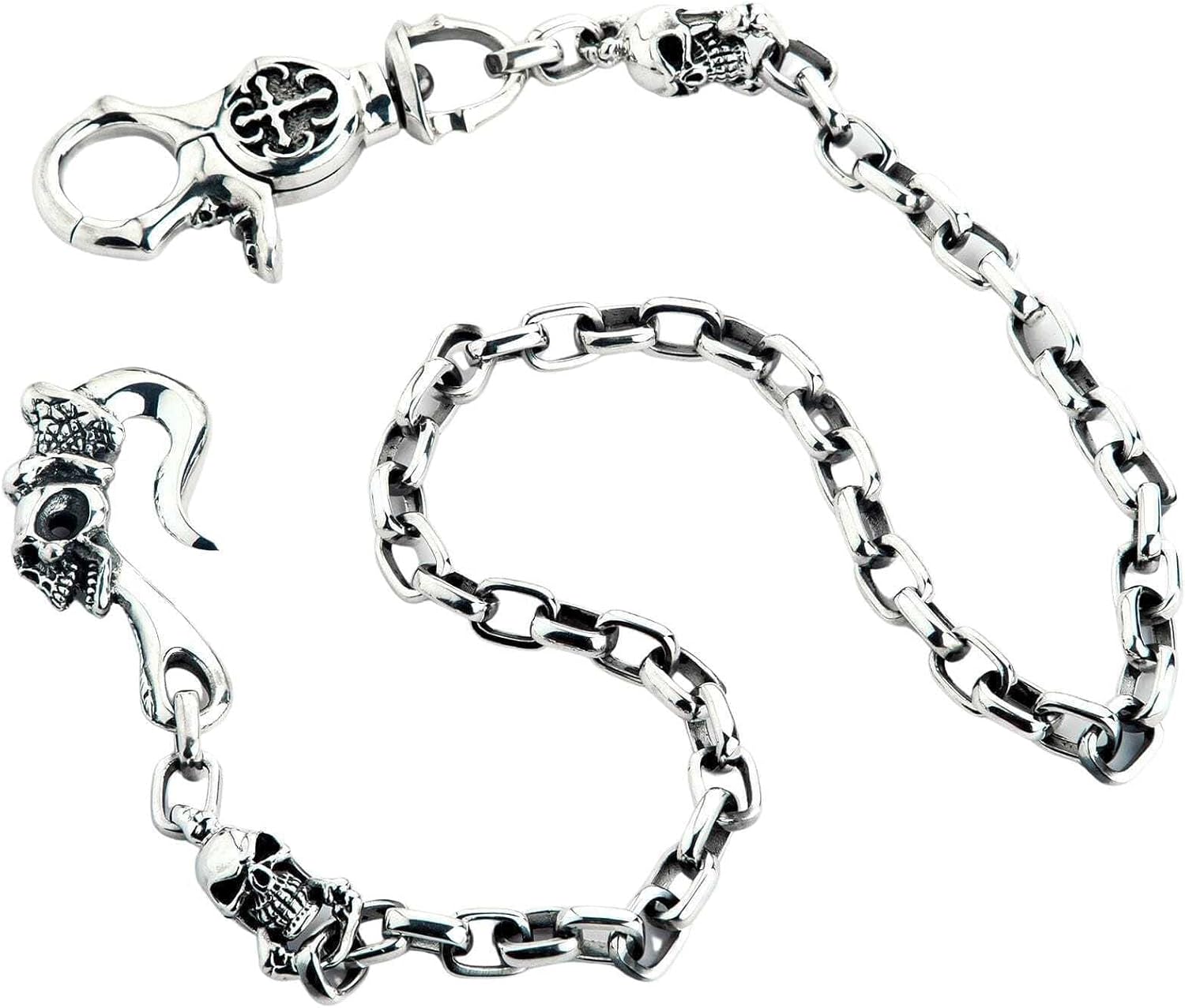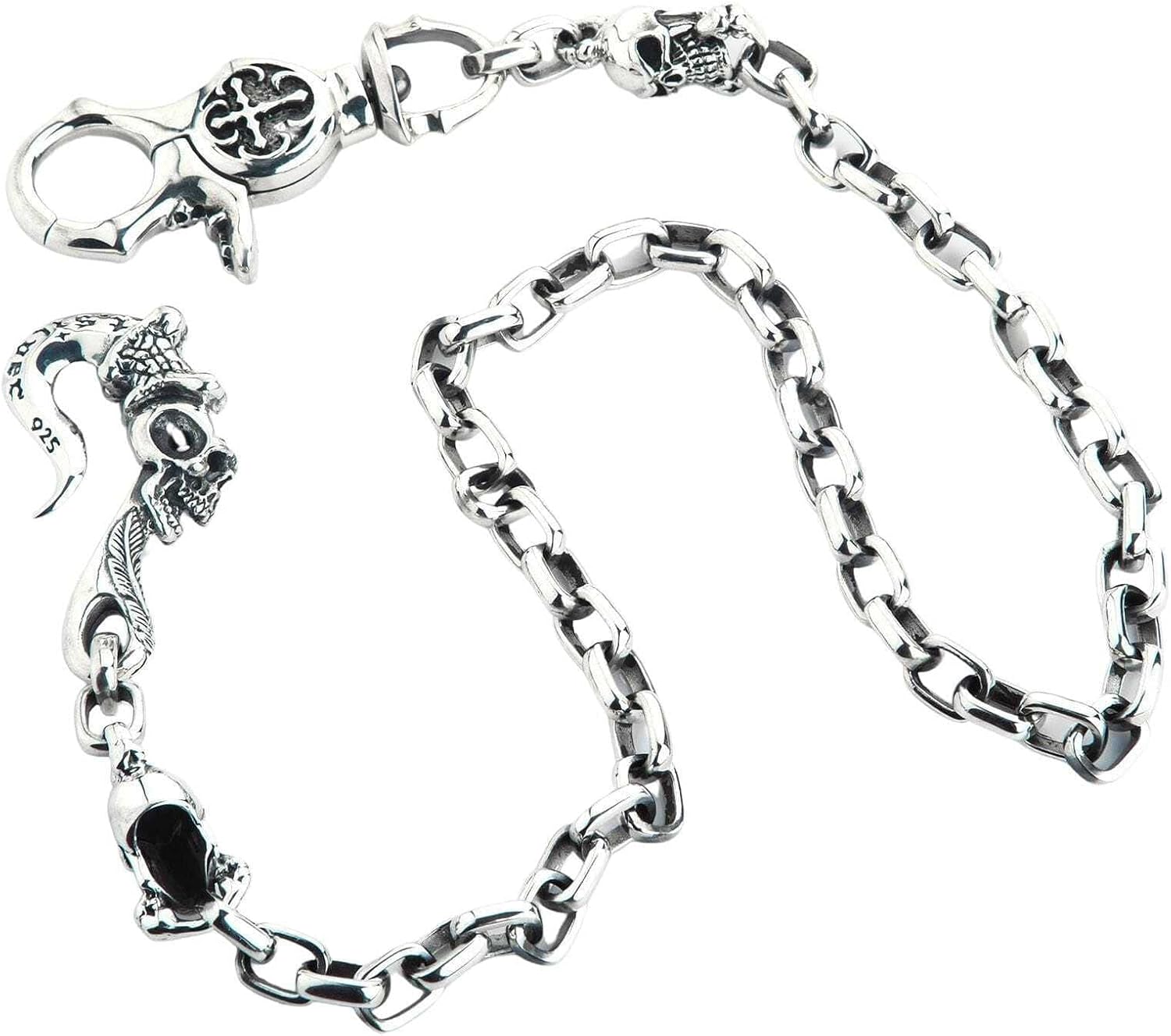 925 Sterling Silver Tribal Gothic Skull Wallet Chain Men’s Biker