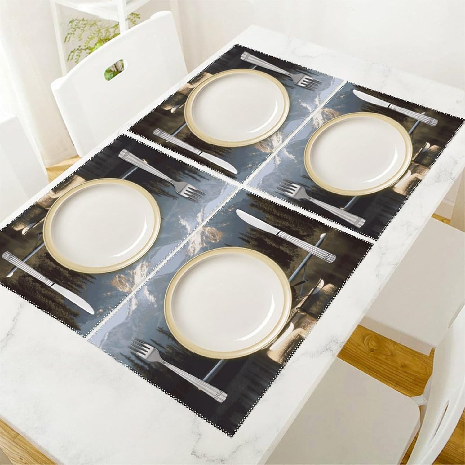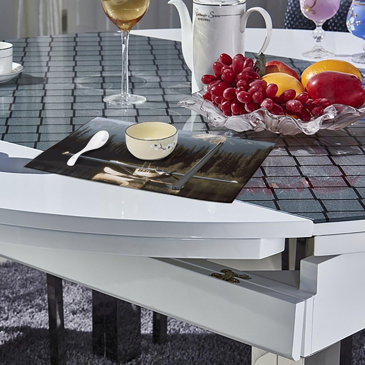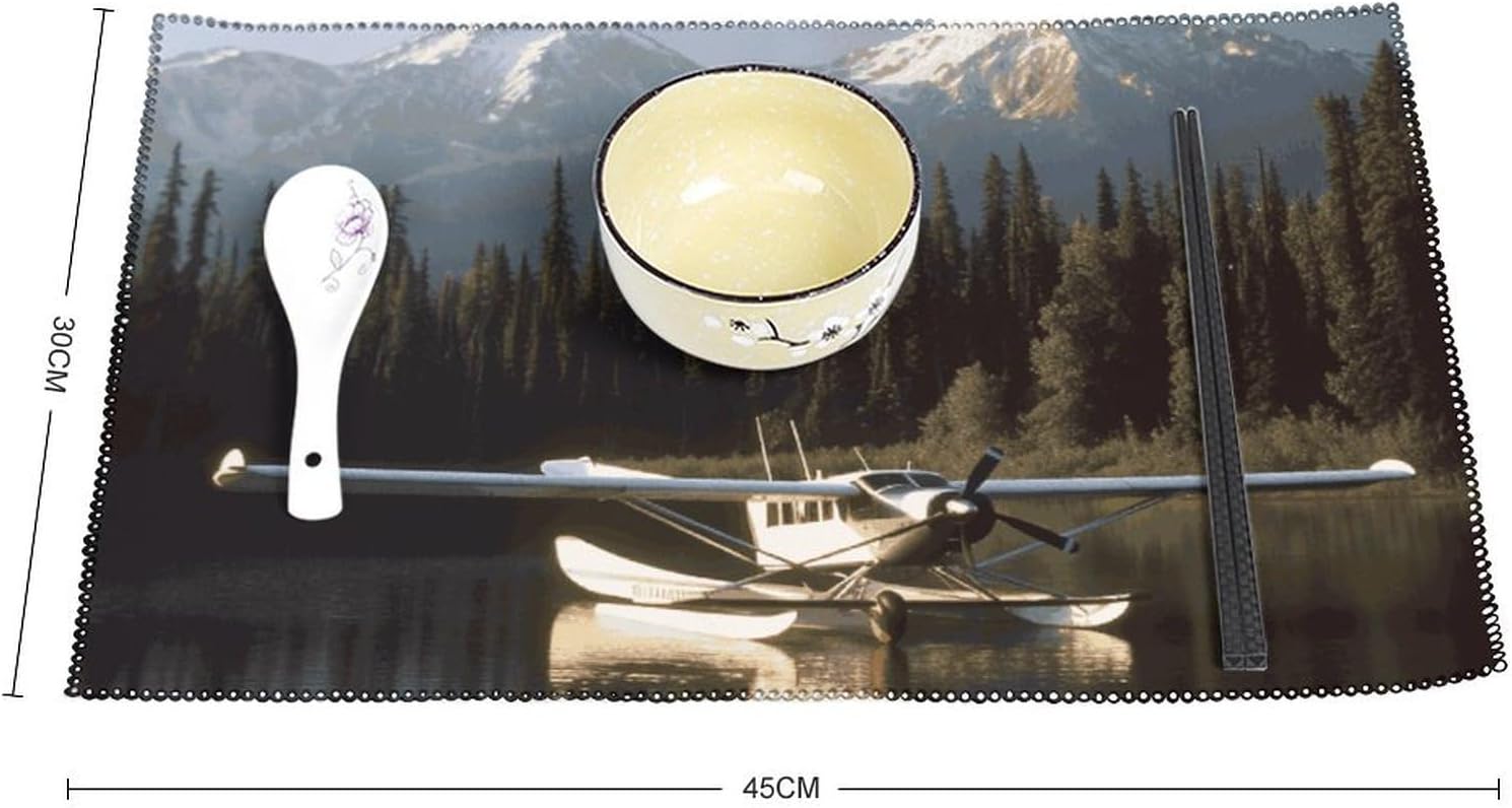About this itemnPerfect Protection: Crafted from high quality canvas fabric, the Airplane on Lake table protector is thick, protecting your tables and furniture from hot dishes, stains and scratches.They provide a non-slip surface, resist fading, and are easy to clean, elevating your dining experience.nMeasurements: Each package includes 4 pieces of placemats measuring 17.7 x 11.8Inch.If there is any problem,please contact us, our customer support team is always ready to help you. It is suitable for all hot drinks and plates, protect your dining table from scalding.nGreat Gift Idea: The stylish placemats set makes s great housewarming, wedding or birthday gift. They are quality assured, practical, stylish, and add a touch of elegance to any home. Add style to your dining setting while ensuring table protection.nVersatile Uses:Our placemats can be used as nice accessories to match your different decor purposes such as table mats, pot holders, coasters, laptop pads, etc. The rustic and neutral design fits any occasions and helps to create a warm and inviting atmopshere.nEasy to Care: Hand wash with warm soapy water or wipe dry directly; do not wash in a washing machine or use steel balls or something very difficult to clean.They provide a non-slip surface, resist fading, and are easy to clean, elevating your dining experience.