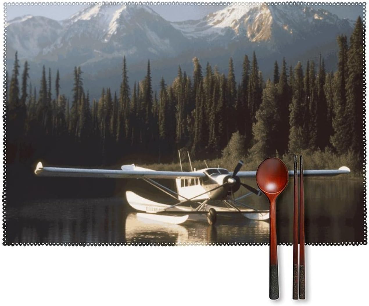 Airplane on Lake Placemats Set 4 Heat Resistant Place Mats Non-Slip Washable Indoor Outdoor Table Mats Table Mats for Dining Kitchen Party Measures 17.7 X 11.8Inch