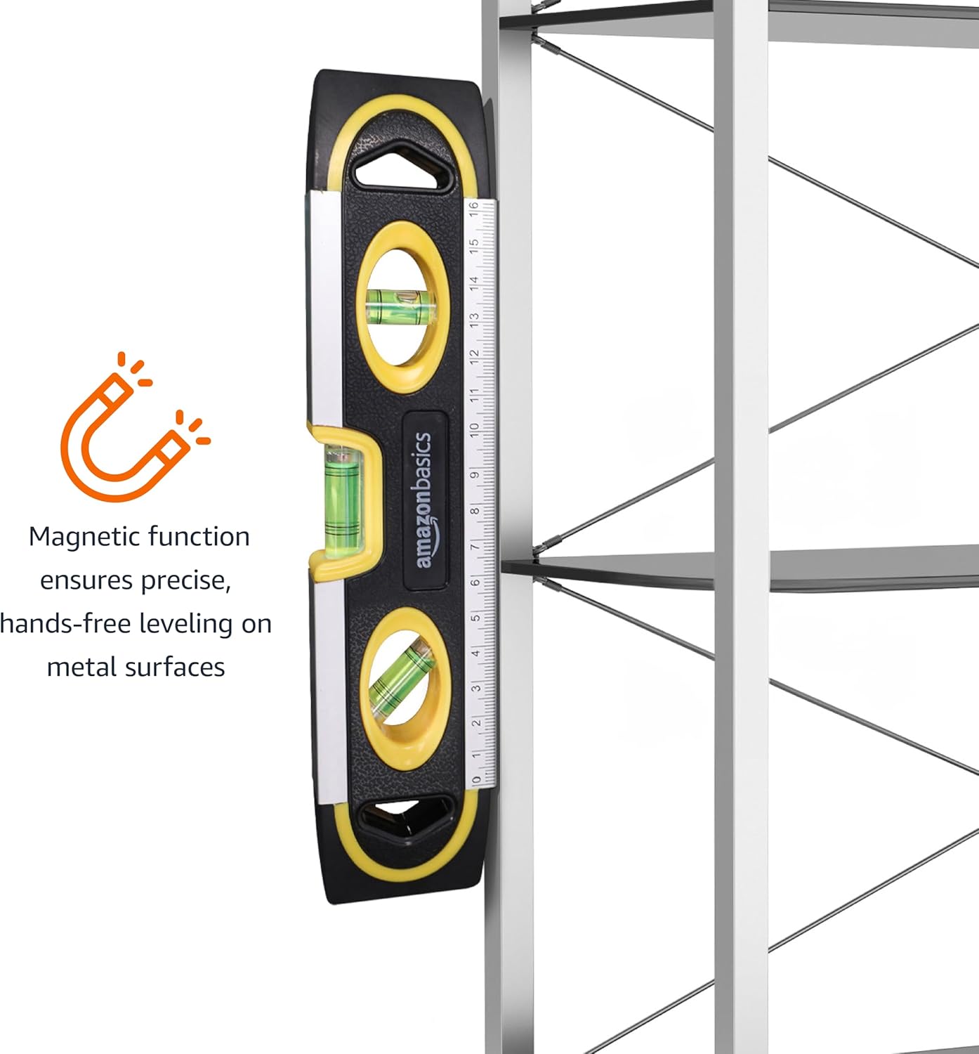 Amazon Basics 9-inch Easy to Use Magnetic Torpedo Level and Ruler, with 180/90/45 Degree Bubbles, Black, Yellow