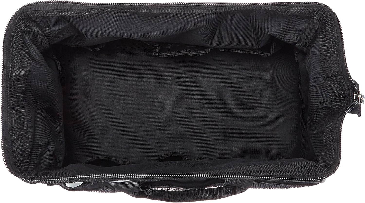 About this itemn100% PolyesternImportedn16-inch tool bag with 26 pockets: 10 internal and 16 external; ideal for home, workshop, or job sitenTough black and grey Oxford cloth exterior; wide opening for easy access to stored itemsnHeavy-duty stitching for maximum durability; bar tacking at all stress points for added reinforcementnPadded web carrying handles; adjustable strap ensures comfortable carryingnBag Dimensions: 15.9 x 8.3 x 9.1 inchesn See more product details
