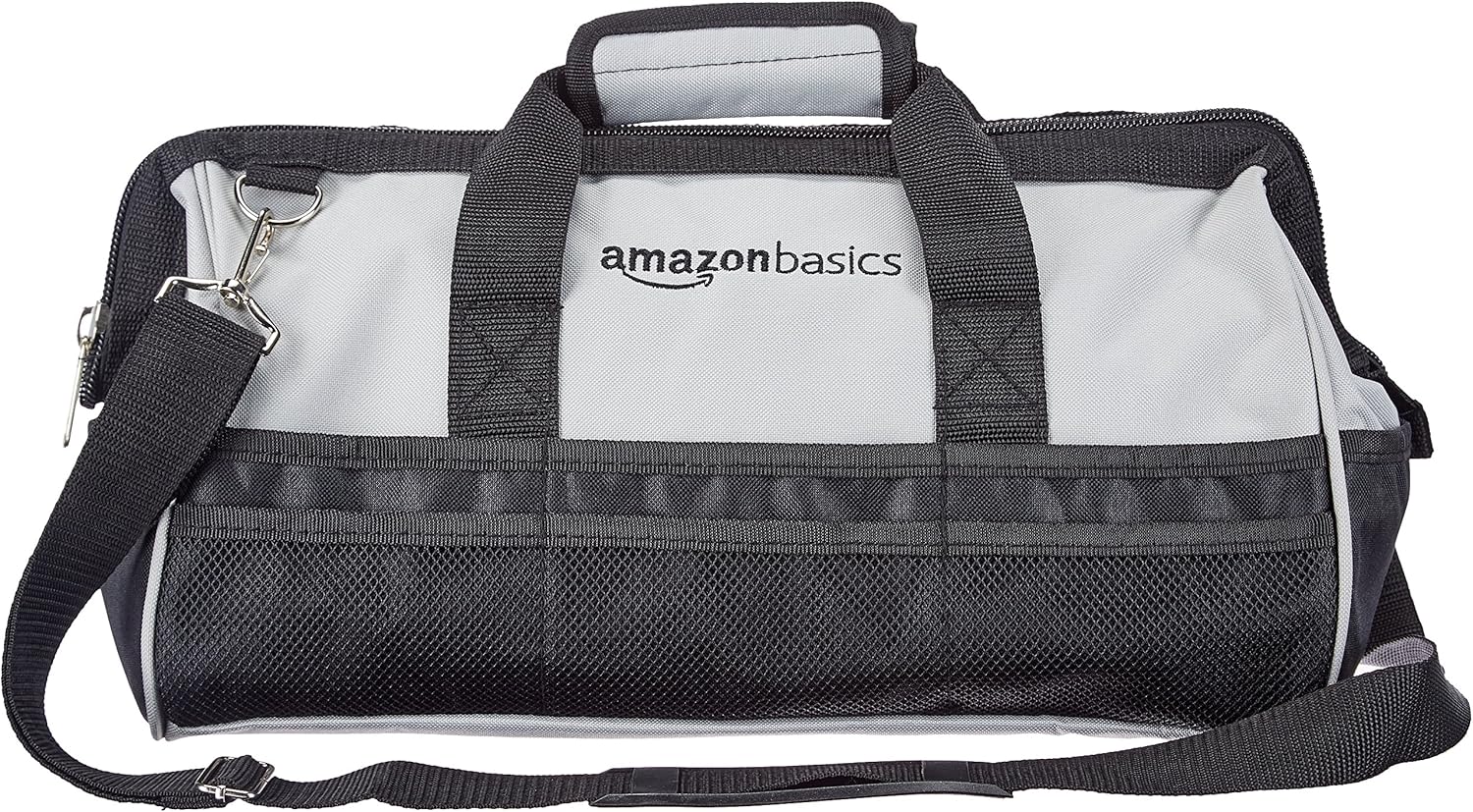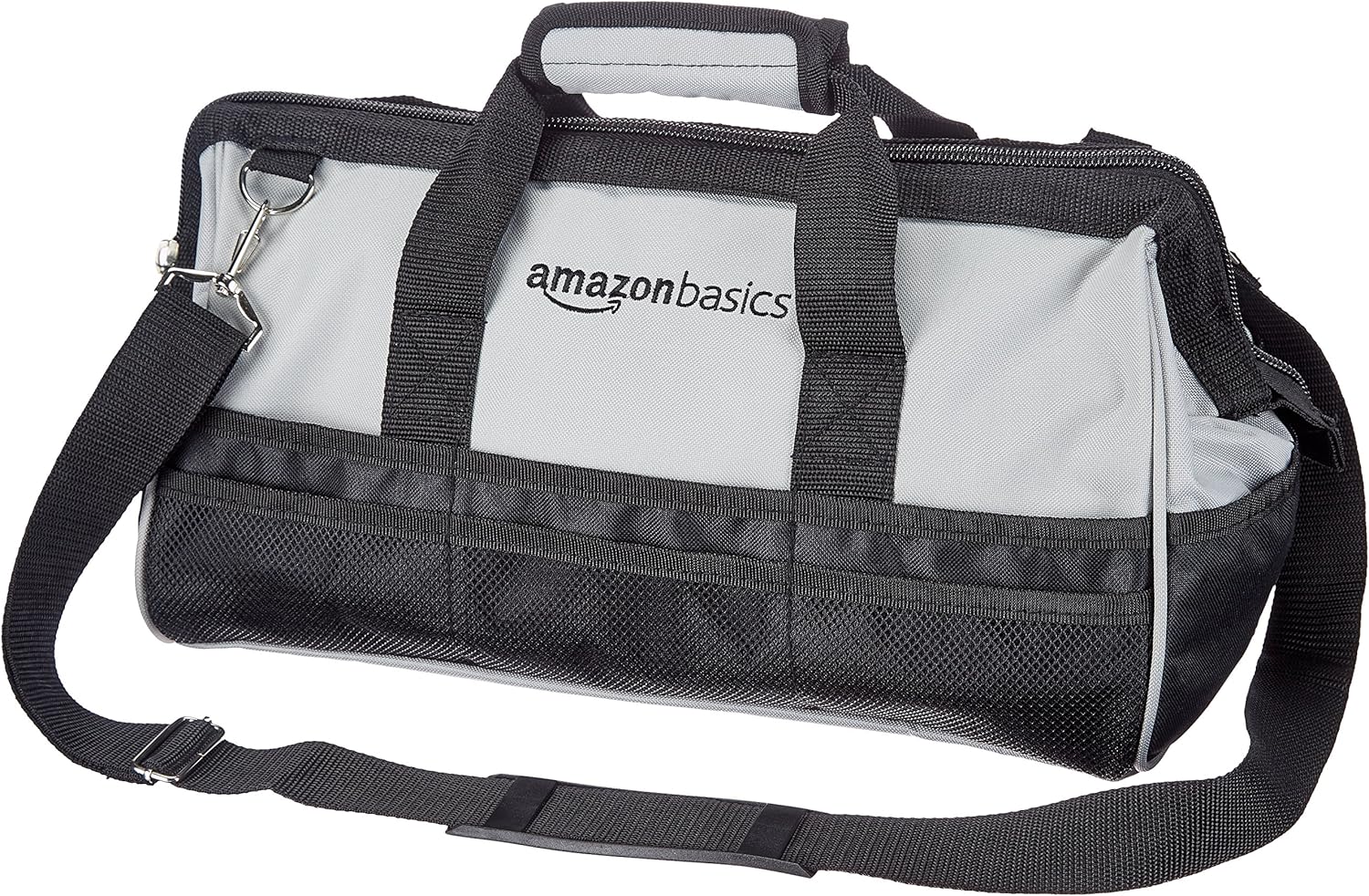 Amazon Basics Durable Wear-Resistant Base, Tool Large Standard Bag with Strap, 16 Inch, Black & Grey