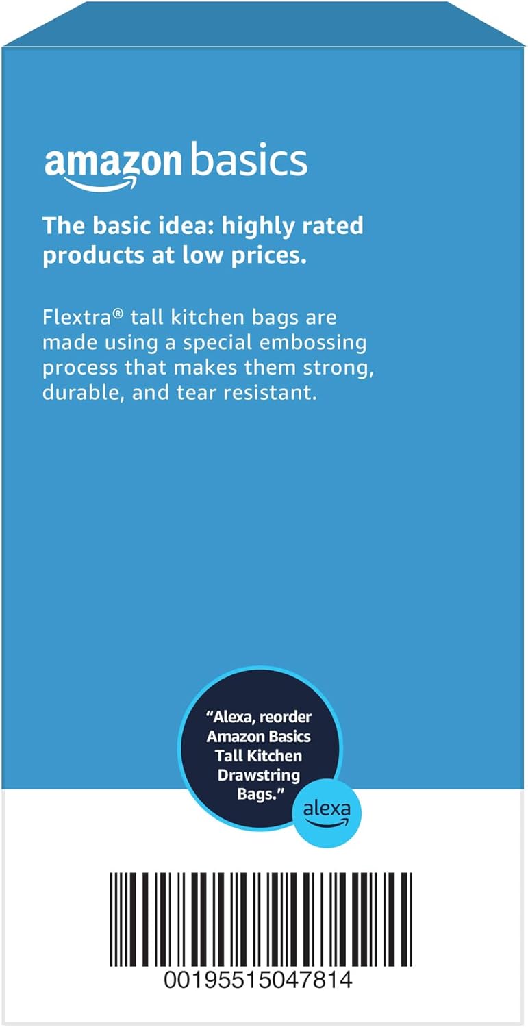 Amazon Basics Flextra Tall Kitchen Drawstring Trash Bags, Clean Fresh Scent,10% Post Consumer Recycled Content, 13 Gallon, 90 Count, Pack of 1