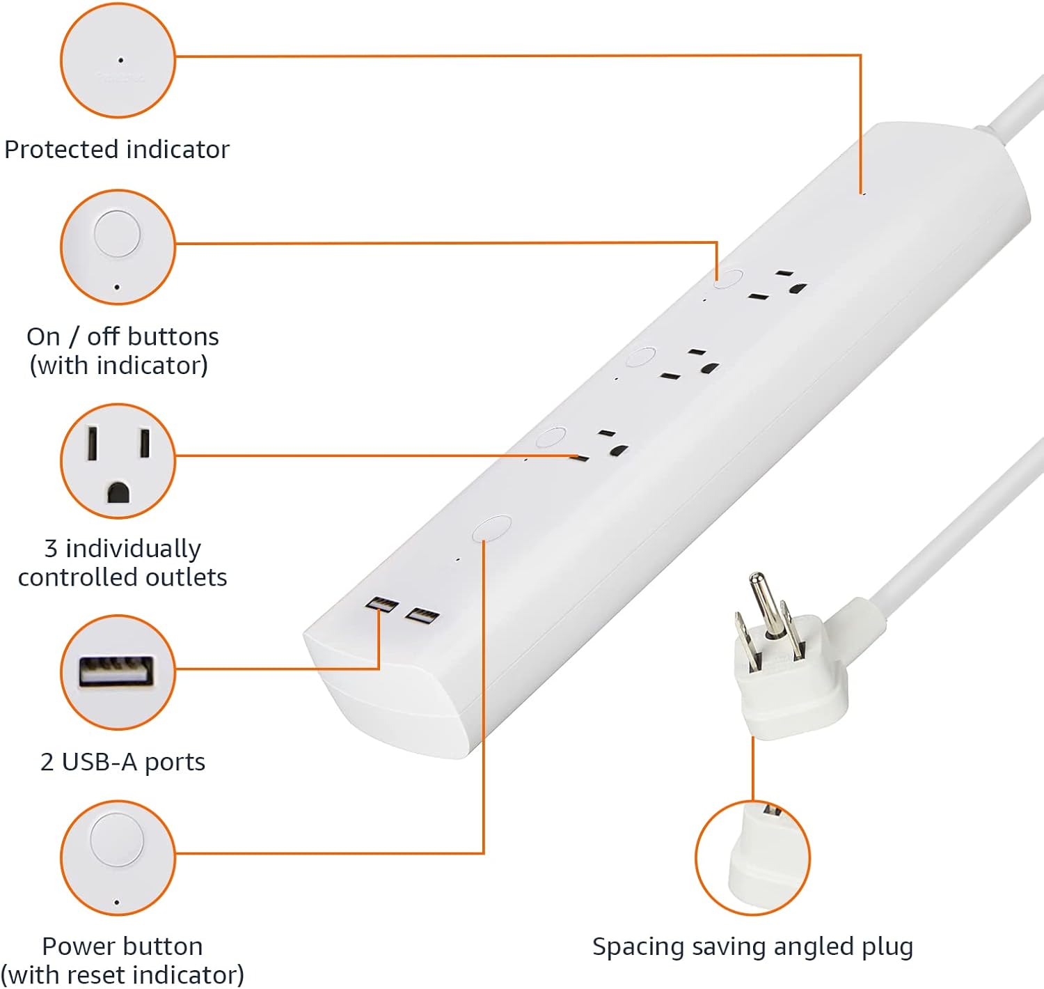 About this itemnEASY SETUP: Start usage in minutes by plugging in the smart extension cord and connecting via the Alexa appnCONTROL ANYTIME, ANYWHERE: Manage your electronics from afar with the power strip with USB features; schedule appliances to turn on/off automatically or remotely to fit your lifestylenVERSATILE CONTROL OPTIONS: Use the multi outlet extension cord to control 3 outlets independently or group them for unified operationnHUB-FREE SMART FUNCTIONALITY: Seamlessly integrate with Alexa using this smart power strip WiFi, create routines and schedules with ease using the Alexa app, no need for a hubn› See more product details