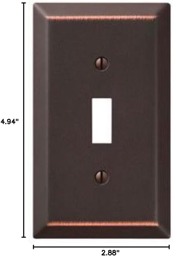 About this itemnELEVATING STYLE: An Amerelle wallplate will give richness and elegance to your space and be the finishing touch to your home decor and home improvement projects. Our wide selection of wallplates are fit to match any decor style and paint finish.nMID-CENTURY MODERN: Vintage intersects with modernity in our mid-century modern wallplates. Compliment your homes minimalistic style with our trendy wallplate finishes and designsnLASTING VALUE: Know you are receiving a durable, long-lasting product when you buy an Amerelle wallplate. Made from the finest materials to maintain its finish for years. An Amerelle wallplate is an inexpensive upgrade to any home.nSUPERIOR QUALITY: Amerelle wallplates are made with you and your home in mind. It is the finishing touches that make your home special. We provide top-notch products that are sure to last, so you and your family can focus on enjoying your home.nPRODUCT DETAILS: 1 Toggle Outlet Wallplate | Style: Mid-Century Modern | Material: Steel | Finish: Aged Bronze | Dimensions: 0.25