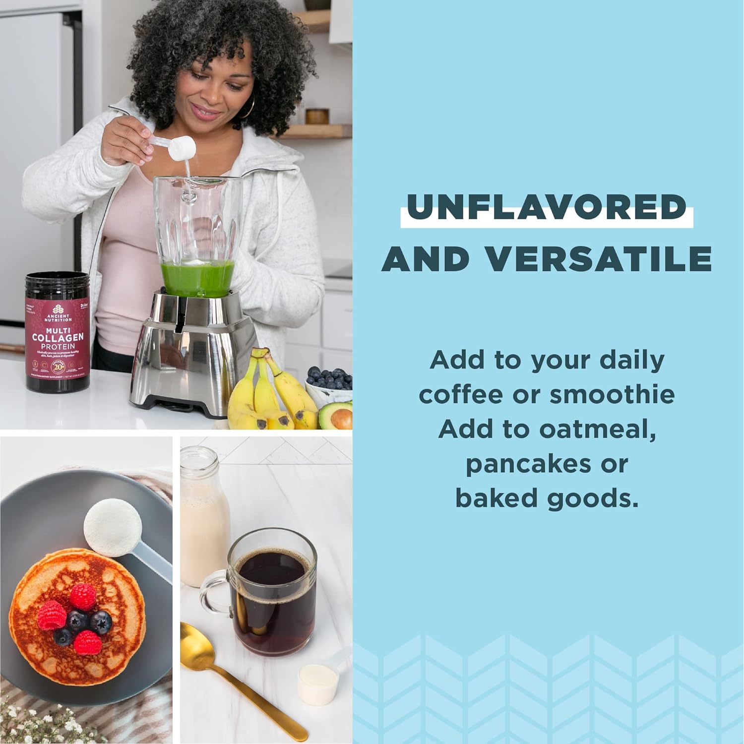 About this itemnContains 10 types of collagen from 4 real food sources – beef, chicken, fish and fermented eggshell membrane; Delivers full-body benefits for healthy hair, skin, nails, joints and gut.nMade with proprietary fermented eggshell collagen, which is shown to reduce exercise-induced discomfort. Fermentation boosts the bioavailability of nutrients, making it easier for your body to absorb them.nEnhanced with soil-based organism (SBO) probiotics to support healthy gut flora and digestive function: Get 200% of your daily recommended value of antioxidant-rich vitamin C and 4B CFU* probiotics in 2 scoops.nEasy to use – just add 2 scoops to water, smoothie, protein shake or coffee; Mixes easily in hot and cold liquids; Non-GMO, grass-fed, pasture-raised and cage free, made without hormones or chemicals, gluten and grain free.nOur formulas are informed by ancient wisdom and backed by modern science; We use clinically-studied ingredients, backed by research and tested by accredited 3rd party labs for efficacy, GMP Certified for safety and all products are made in the U.S.A.