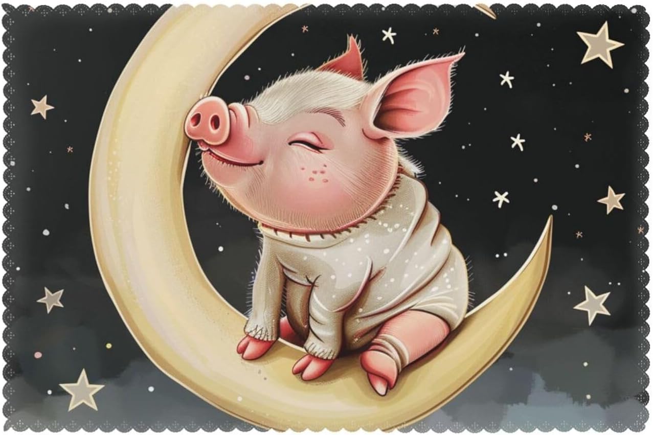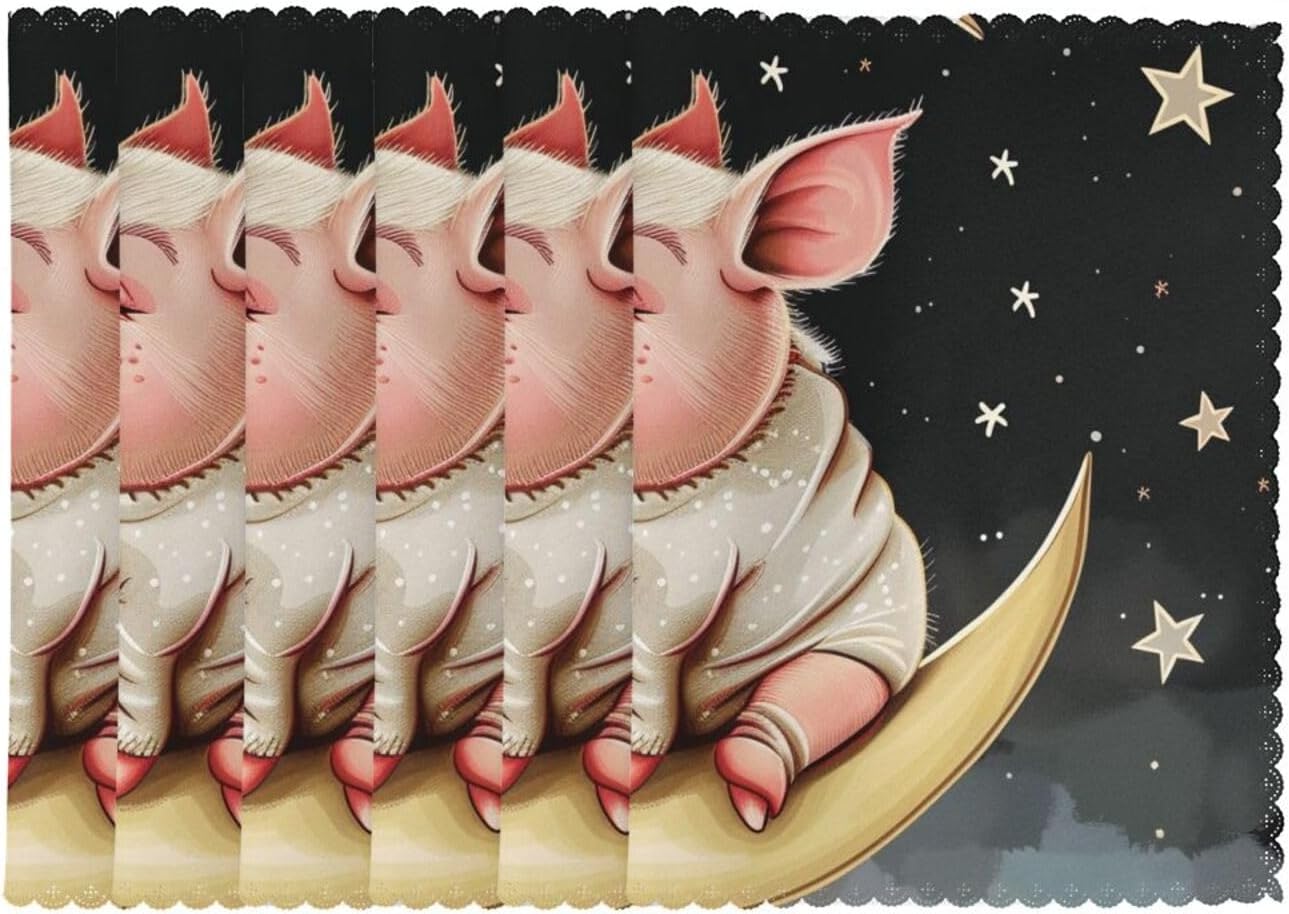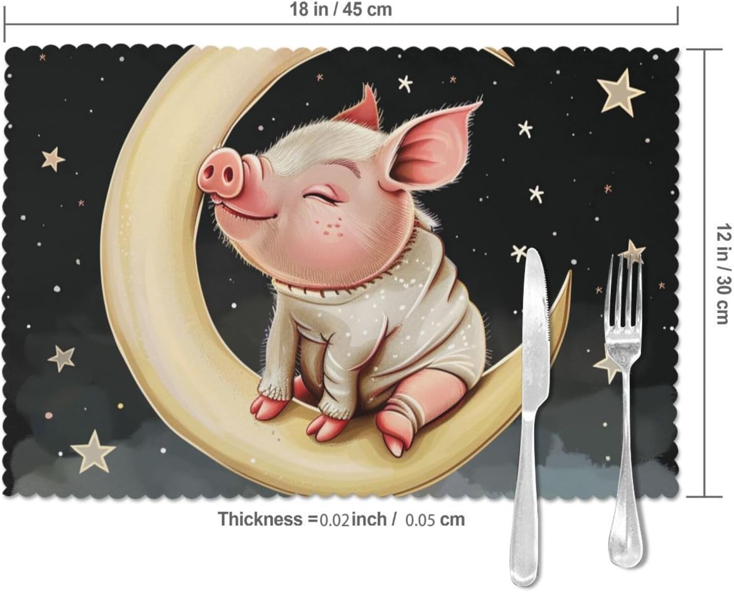 Animals Sitting The Moon Printed Heat Resistant Placemats 6 PCS – Non-Slip Washable Kitchen Table Mats for Dining, Parties & More (18x12in, Polyeste)