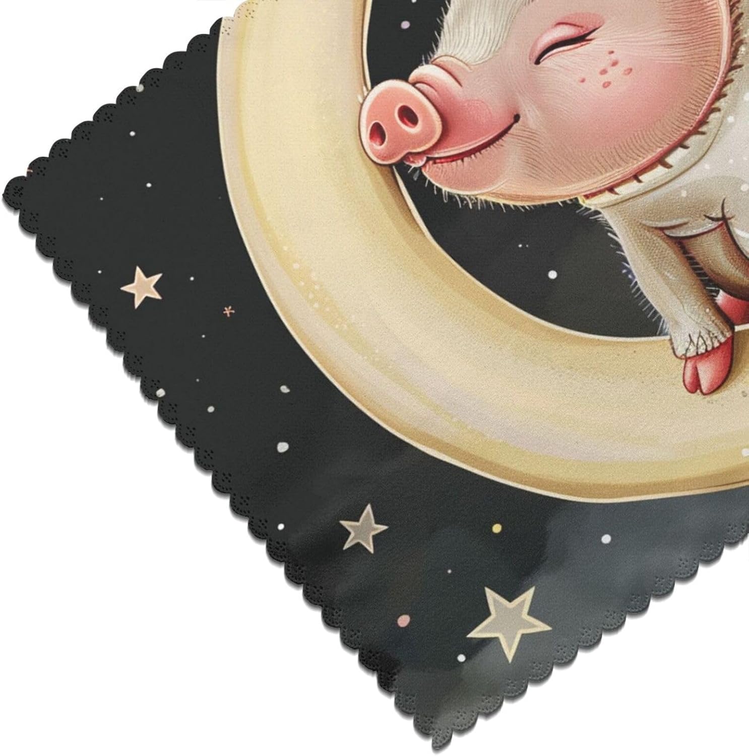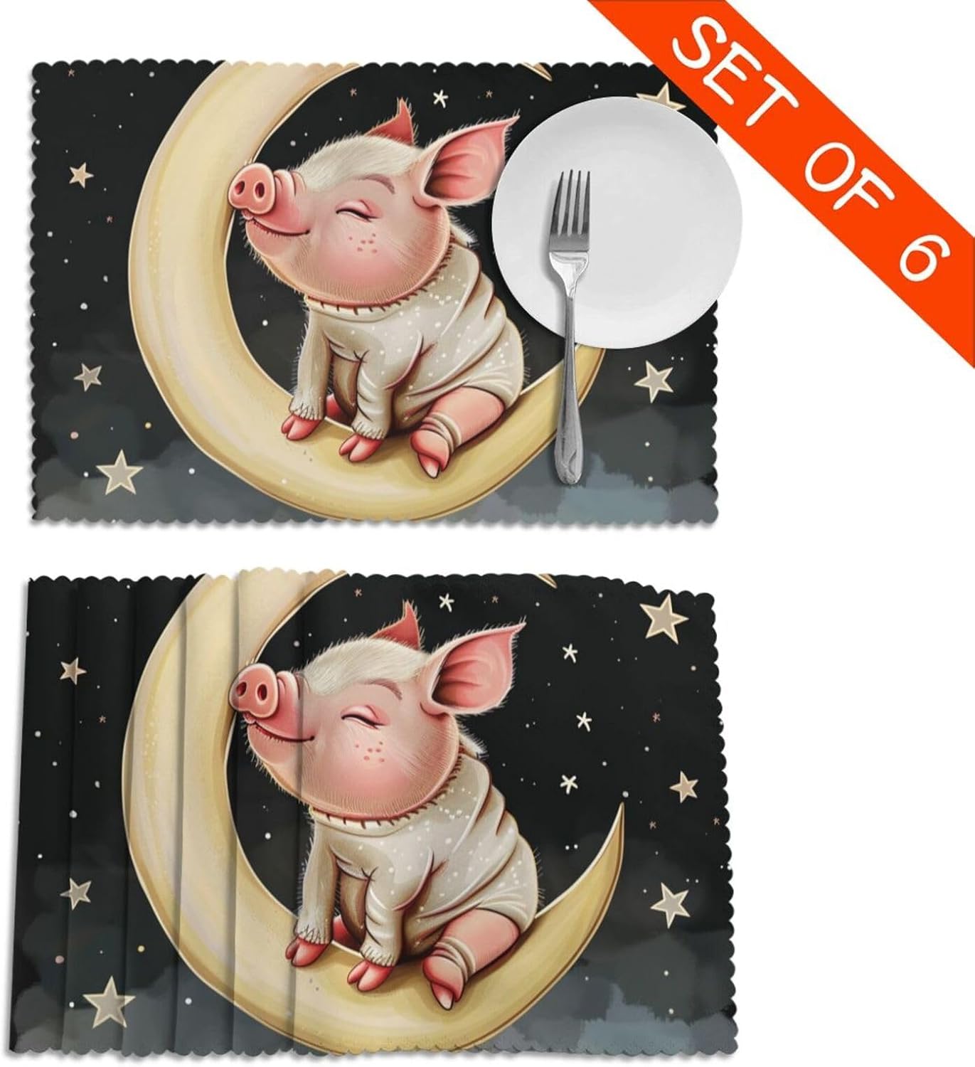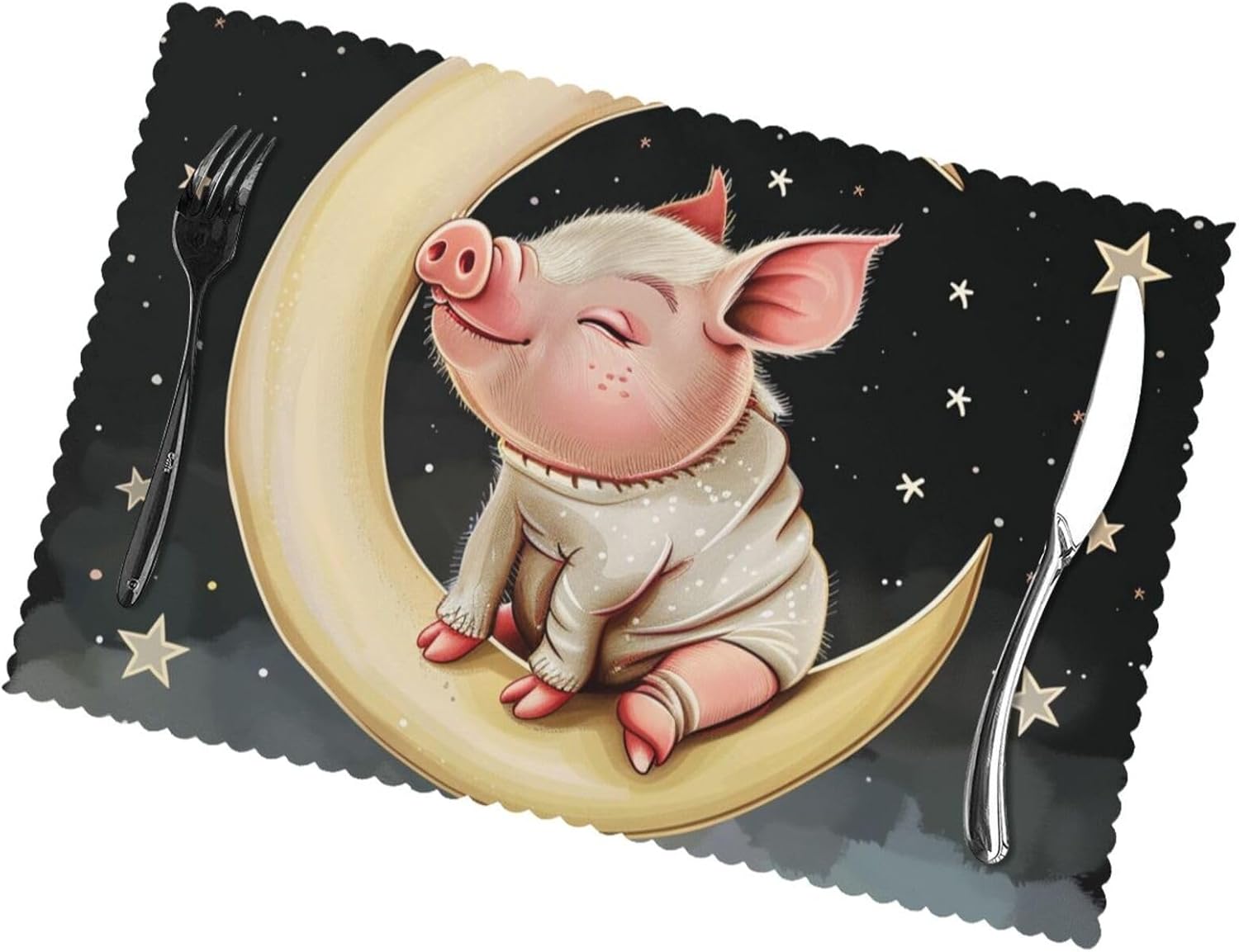 Animals Sitting The Moon Printed Heat Resistant Placemats 6 PCS – Non-Slip Washable Kitchen Table Mats for Dining, Parties & More (18x12in, Polyeste)