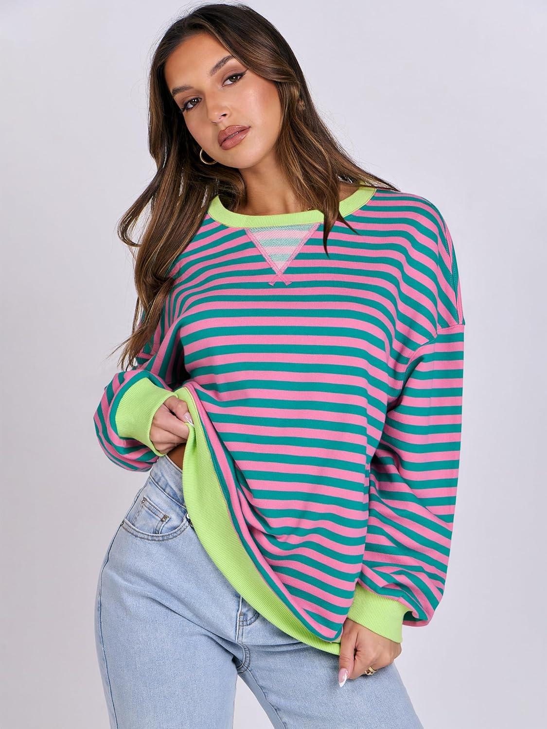 ANRABESS Women Striped Oversized Sweatshirt Long Sleeve Crewneck Shirts 2024 Fall Fashion Pullover Sweater Trendy Clothes