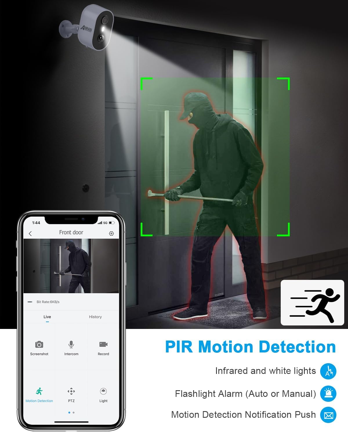 About this itemn?HD Video Quality, Color Night Vision?This wireless security camera outdoor has a 105° monitoring field of view, 3MP HD image quality, with color Night Vision. It delivers clear, wide-angle video, day or night, in full light or not. In the dark, the camera with advanced colour night vision allows you to see every detail around your house. Video information can be saved for up to 7 days on the included App Cloudedge/ANRAN, so you don’t have to worry about missing out on what’s important.n?Solar Charging, Battery Operated?ANRAN C2 outdoor wireless security camera has two ways of charging: one is to connect to a solar panel, which is constantly powered by the sun’s rays, greatly reducing the need to remove the camera to charge it. The other way is to remove the camera to charge it. The camera is wireless and easier to set up and take down than other models. There is no need to remove the bottom fixture, just remove the camera, making it easy to operate.n?PIR Motion Detection, Sensitive Spotlight and Siren?The built-in infrared motion sensor clearly identifies the movement of objects. When human movement is detected at night, it will trigger the alarm mechanism (alarm and spotlight on at the same time) and gives you message alerts via the APP, so you can chase away thieves and burglars whether you are at home or not with the flashing white light and two-way call function. This provides an important safeguard for home security.n?Two-way Audio, Multiple Simultaneous Viewers?Our outdoor security camera for home has a built-in microphone and speaker to support live two-way calls. With this feature, you can know the status in real time and take better care of your children and pets. In addition to this, you can also filter and screen visitors and warn thieves with easy operation. This camera supports multiple people watching live video content online at the same time, allowing for better communication between families.n?Fast, Wire-free Setup with No Wiring Required?Solar security camera simplifies the installation steps, allowing you to get rid of the cumbersome installation process, delivers increased installation flexibility to get the perfect camera view. And is equipped with a high-gain antenna and 2.4Ghz WiFi transmission, with strong anti-interference ability. We focus on customer security and privacy protection, all images are encrypted, and no one can access the information without your consent.