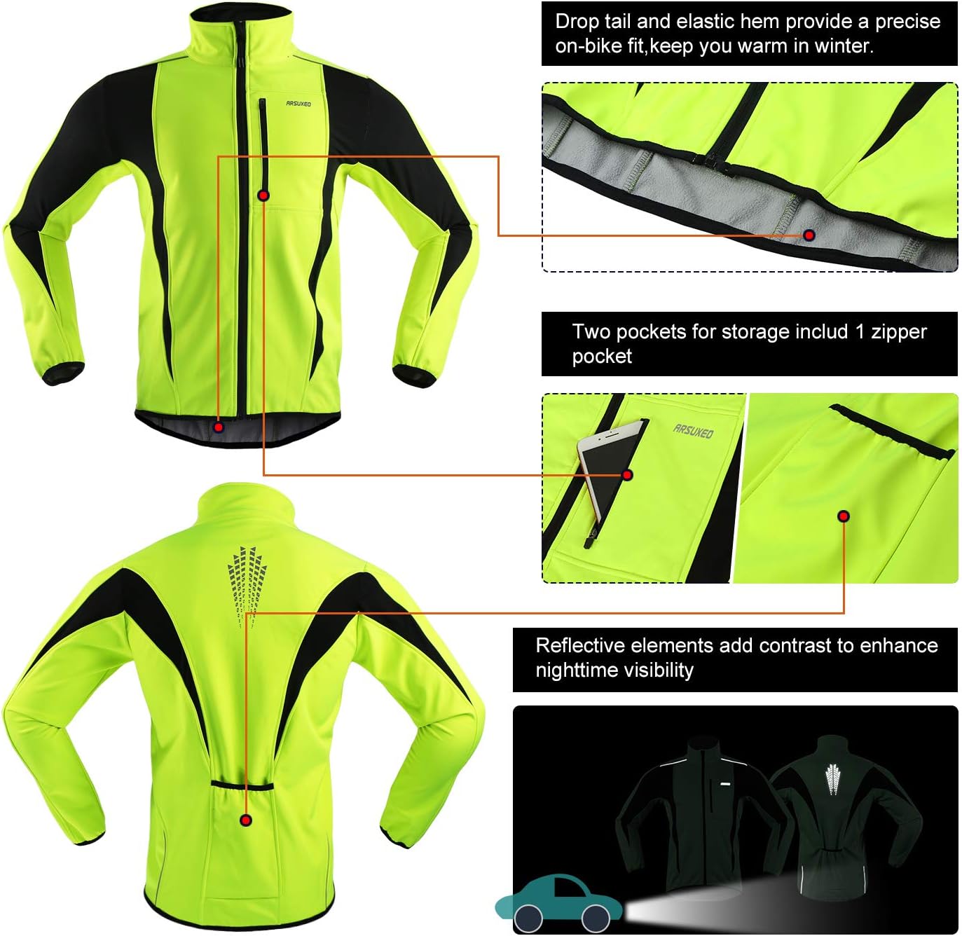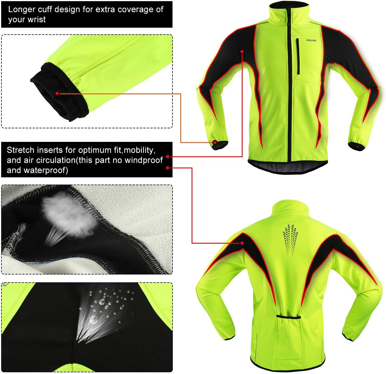 ARSUXEO Winter Warm UP Thermal Softshell Cycling Jacket Windproof Waterproof 15-k