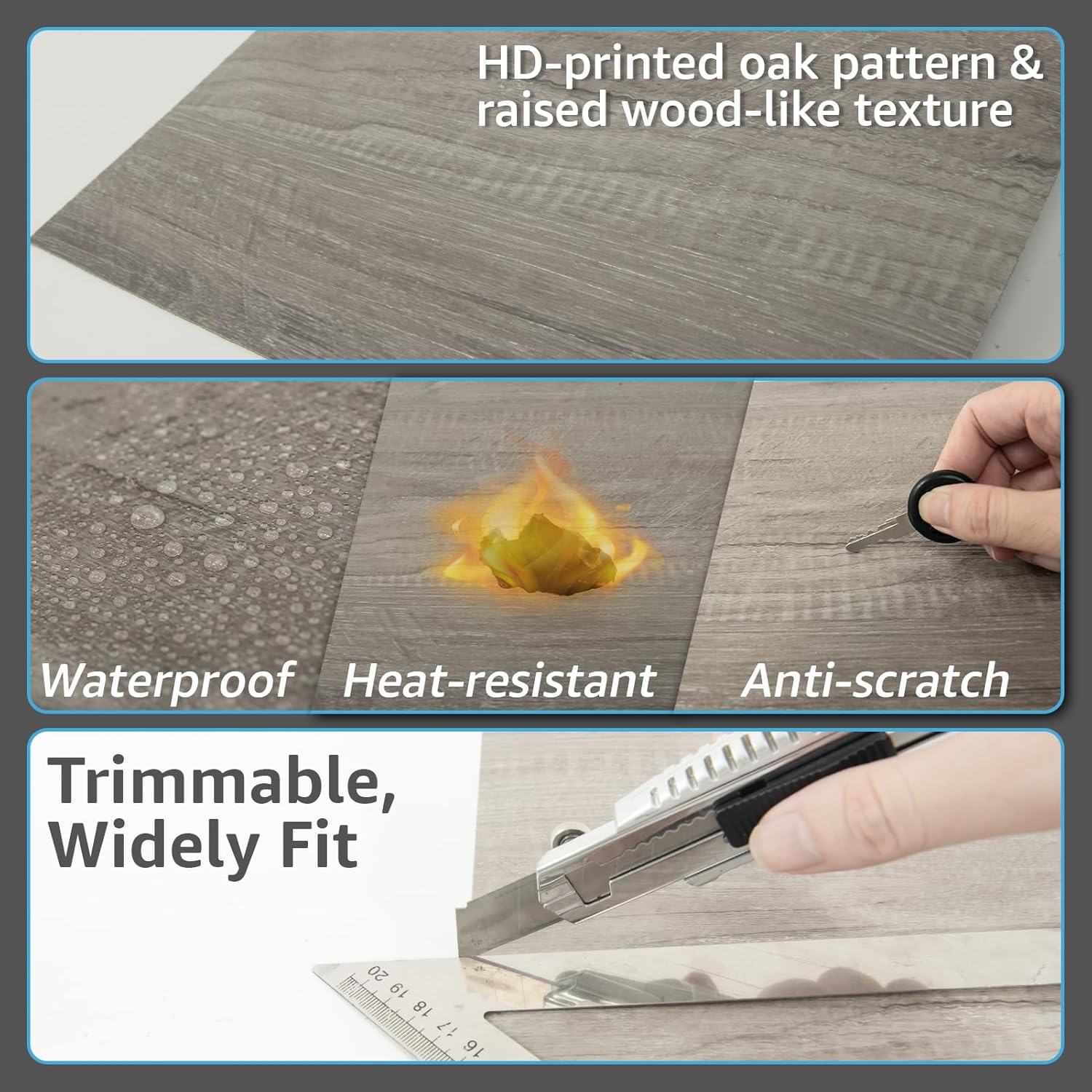 Premium Quality – Art3d Peel and Stick Vinyl Flooring Tiles are crafted with the high quality vinyl, ensuring durability and longevity. Each pack contains 30 tiles, each measuring 12×12 inches, providing a total coverage of 30 square feet – ideal for revitalizing any spacenSuperior Performance – Boasting a rigid surface with a robust core, Art3d Vinyl Tiles are 100% waterproof and fireproof. The wear, scratch, and abrasion-resistant properties ensure longevity, while the high strength guarantees no expansion and stabilitynEasy Installation – Forget the hassle of using adhesives or hiring professionals! Our tiles feature an easy peel and stick design, allowing for a quick and effortless installation process. Simply peel off the backing and stick the tiles to a clean, flat surfacenComfort & Warmth – The Art3d Vinyl Flooring Tiles not only add elegance to your space but also offer a warmer, more comfortable surface to walk on compared to traditional tiles. They are ideal for creating a cozy atmosphere in any roomnTrusted Brand – Choose Art3d, a brand renowned for its high-quality home improvement products. With years of expertise in creating innovative and stylish solutions for your home, you can trust Art3d to provide products that combine form and function