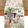 Artoid Mode Bunny Rabbit Floral Polka Dot Happy Easter Table Runner,Seasonal Spring Kitchen Dining Table Decoration for Home Party Decor 13×120 Inch