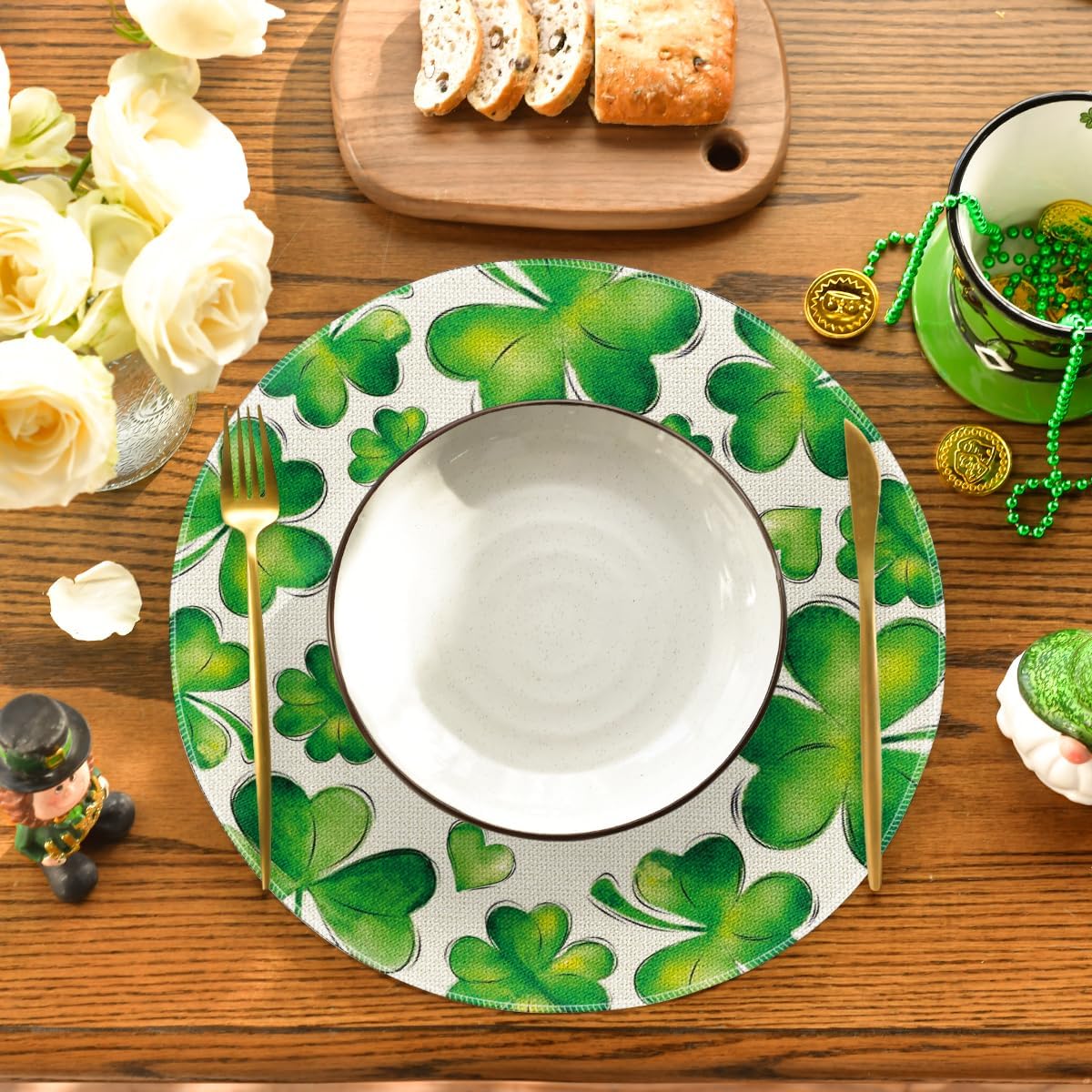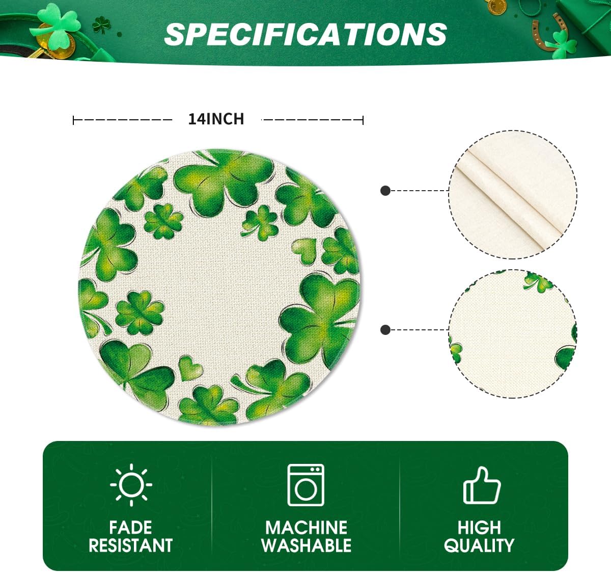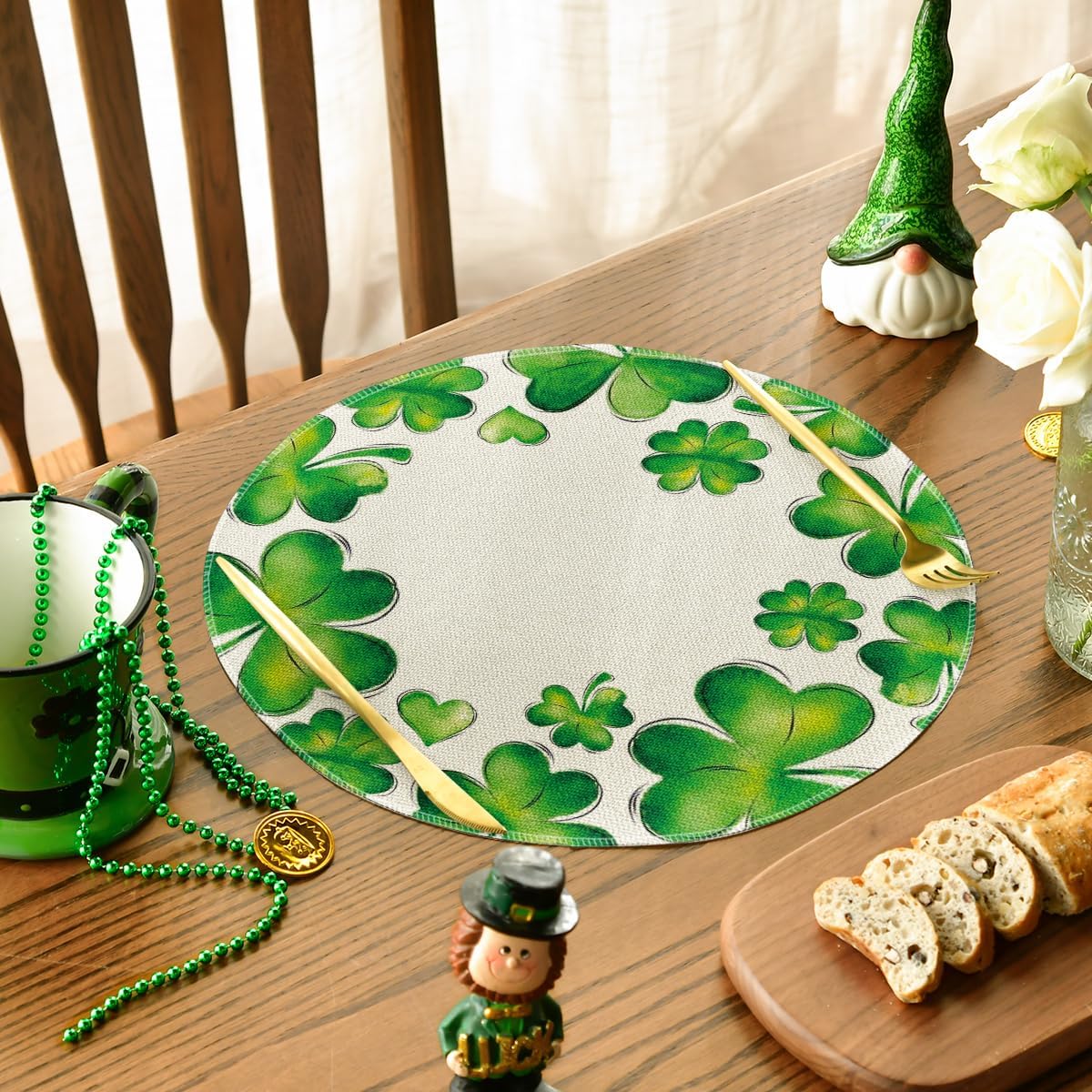 Artoid Mode Shamrock Round Placemats Set of 4,14 Inch Seasonal Spring Farmhouse Table Mats for Party Kitchen Dining Decoration
