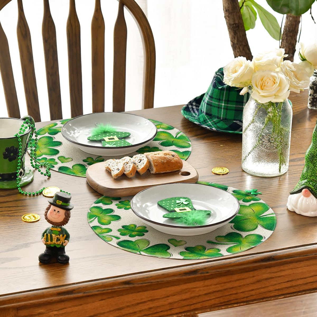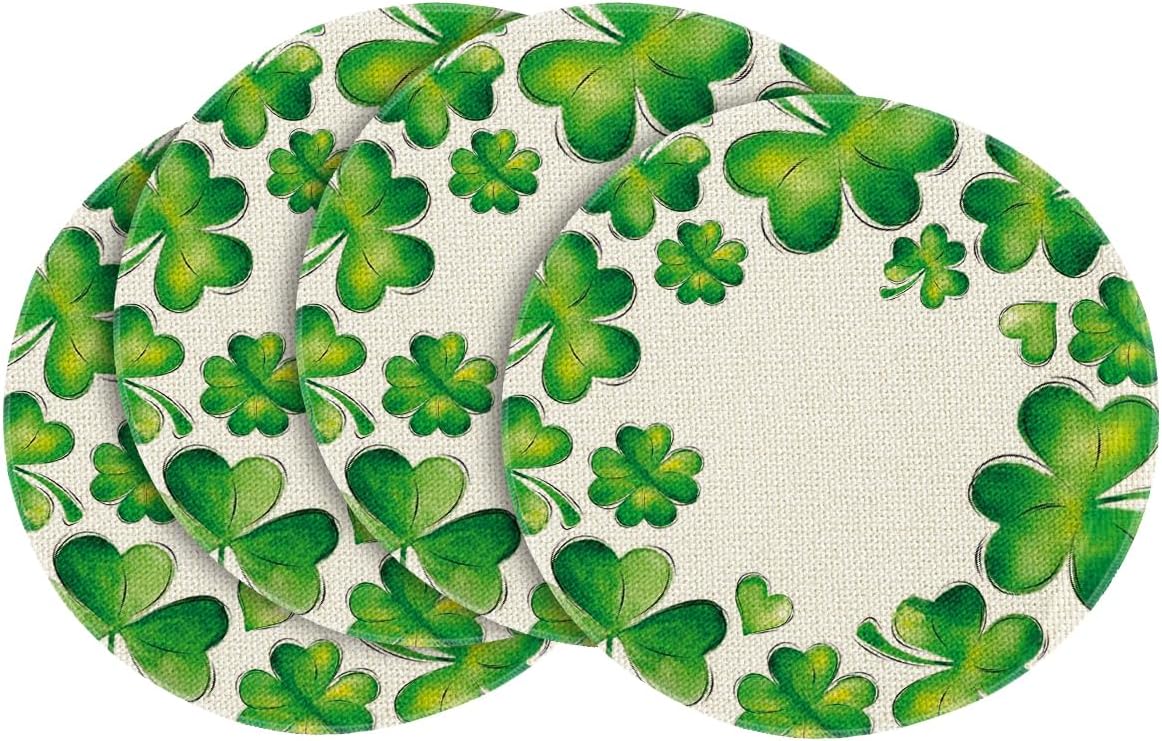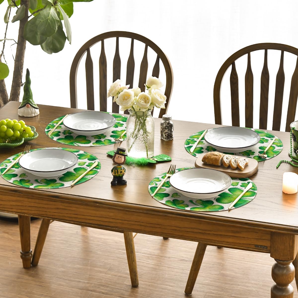 Artoid Mode Shamrock Round Placemats Set of 4,14 Inch Seasonal Spring Farmhouse Table Mats for Party Kitchen Dining Decoration
