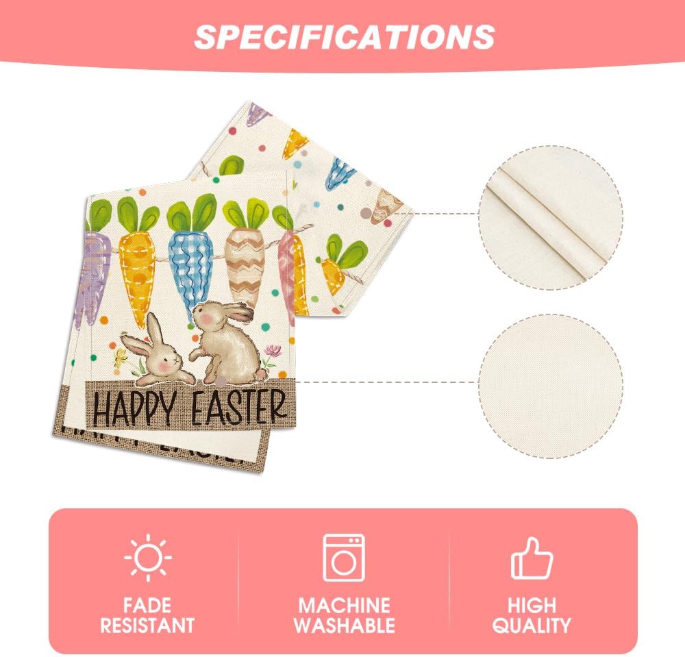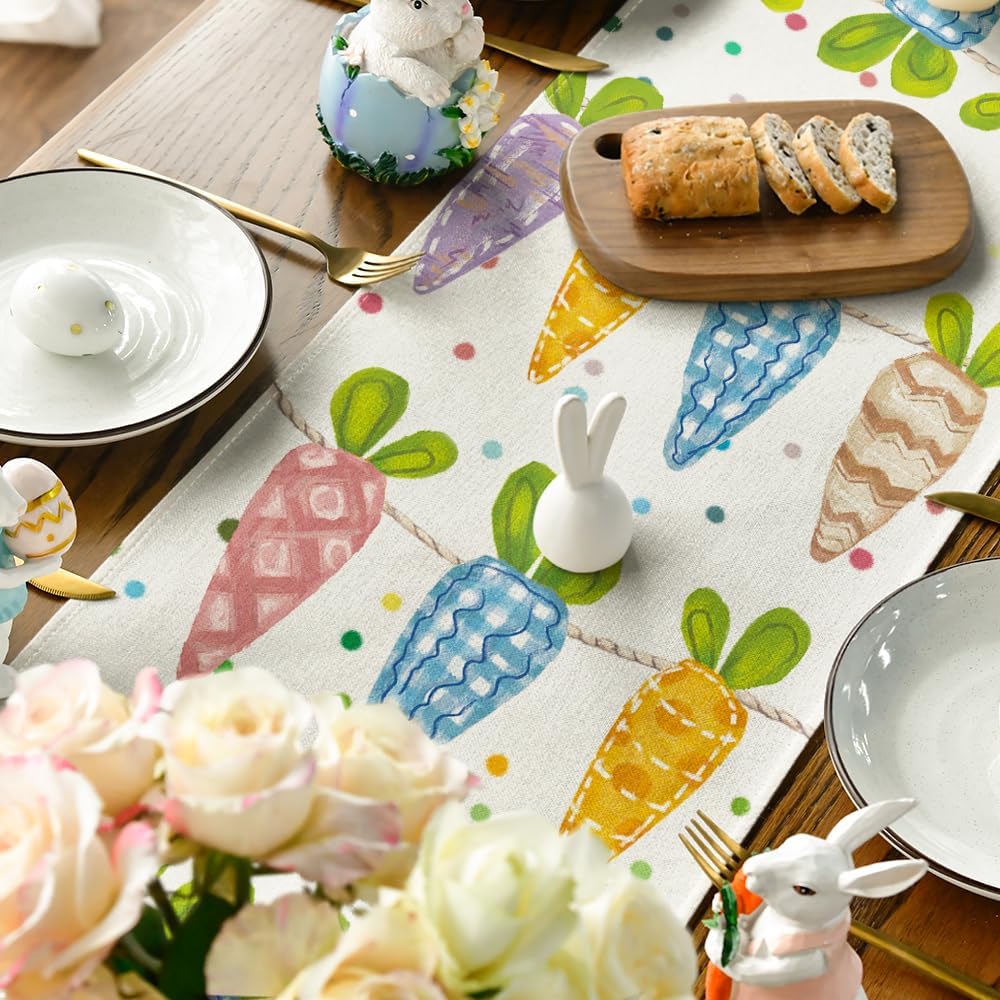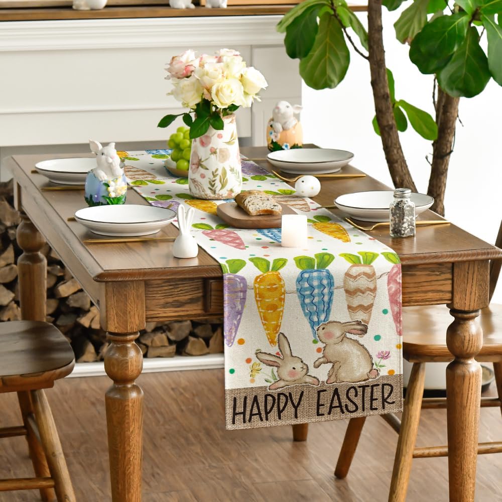 Artoid Mode Yellow Blue Carrot Bunny Rabbit Happy Easter Table Runner,Seasonal Spring Kitchen Dining Table Decoration for Home Party Decor 13×120 Inch