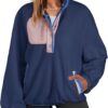 Dokotoo Sweatshirt for Women Oversized Fuzzy Fleece Jacket Color Block Button Long Sleeve Pullover Sherpa Sweatshirts Tops