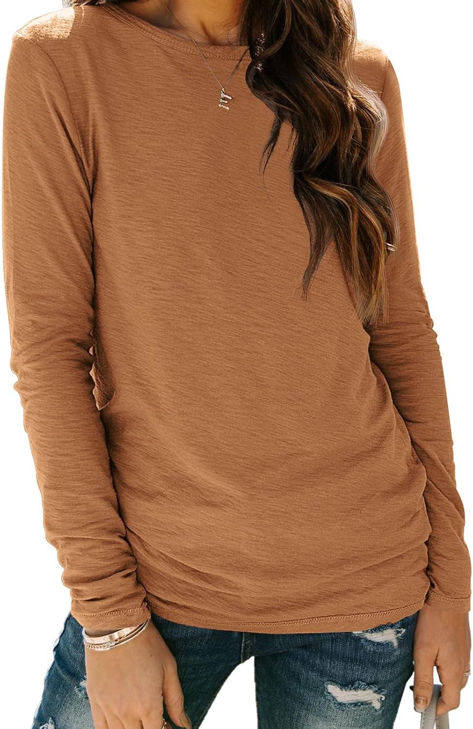 AUTOMET Womens Long Sleeve Round Neck Shirts Basic Tee Fall Tops Outfits Clothes 2025