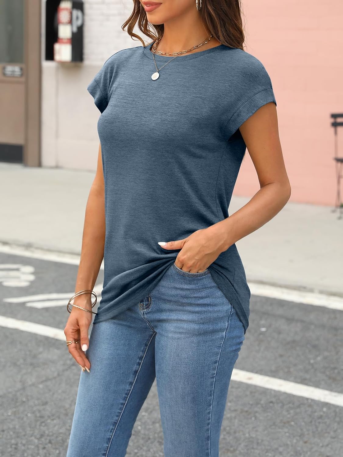 AUTOMET Womens Tops Summer Basic T Shirts Business Casual Loose Fit Cap Sleeve Tee Cute Clothes Trendy Fashion Outfits