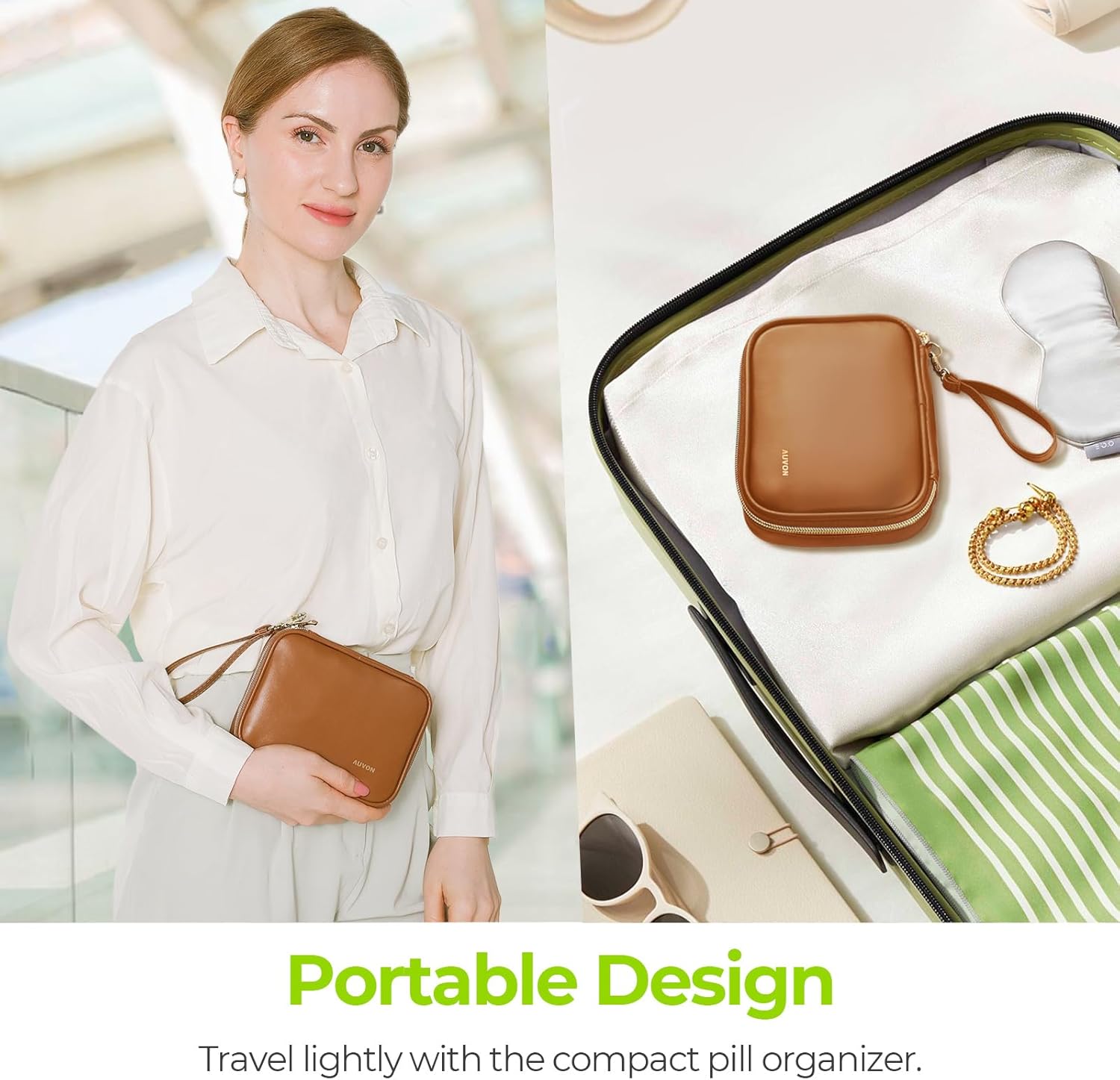 AUVON Weekly Pill Organizer 3 Times a Day, Large Pill Box 7 Day with A PU Leather Bag, Protabel Travel Pill Case Medication Reminder, Daily Pill Box 3 Times a Day for Vitamins, Fish Oils, Supplements