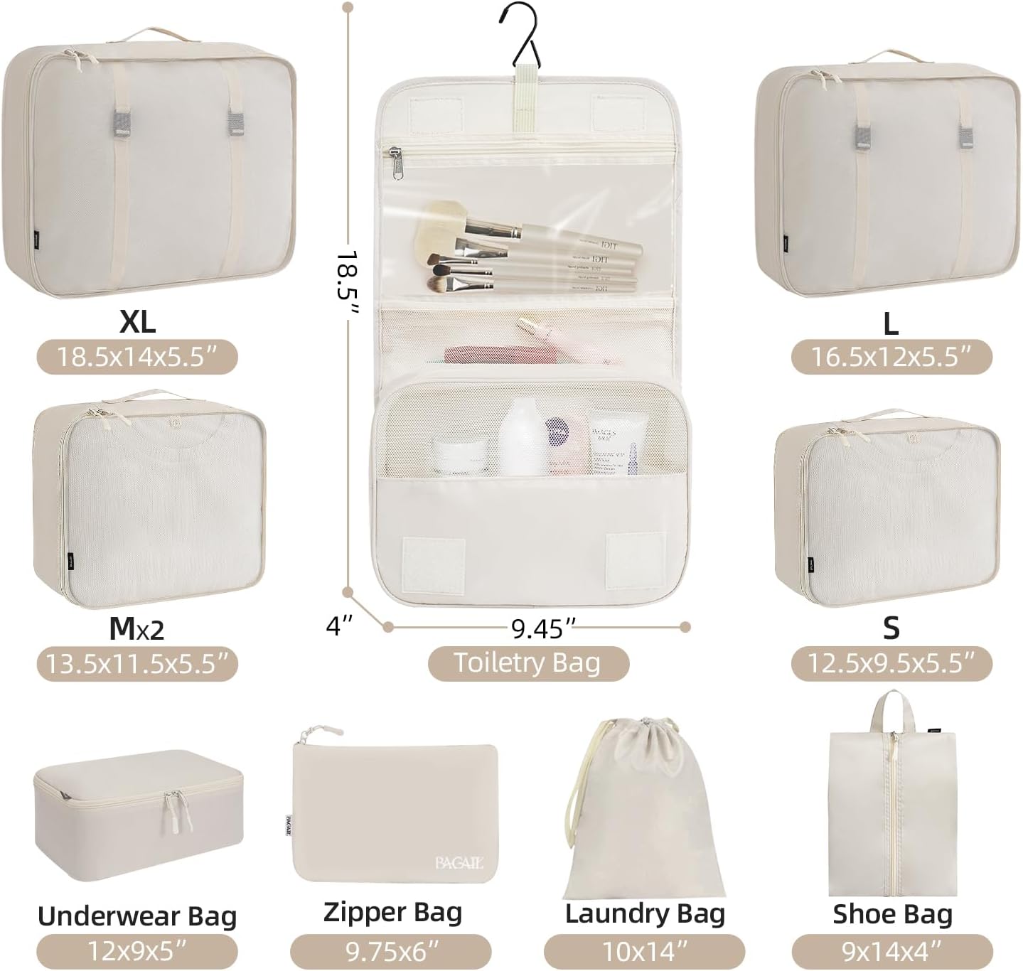 BAGAIL 8 Set/10 Set Packing Cubes Various Sizes Packing Organizer for Travel Accessories Luggage Carry On Suitcase