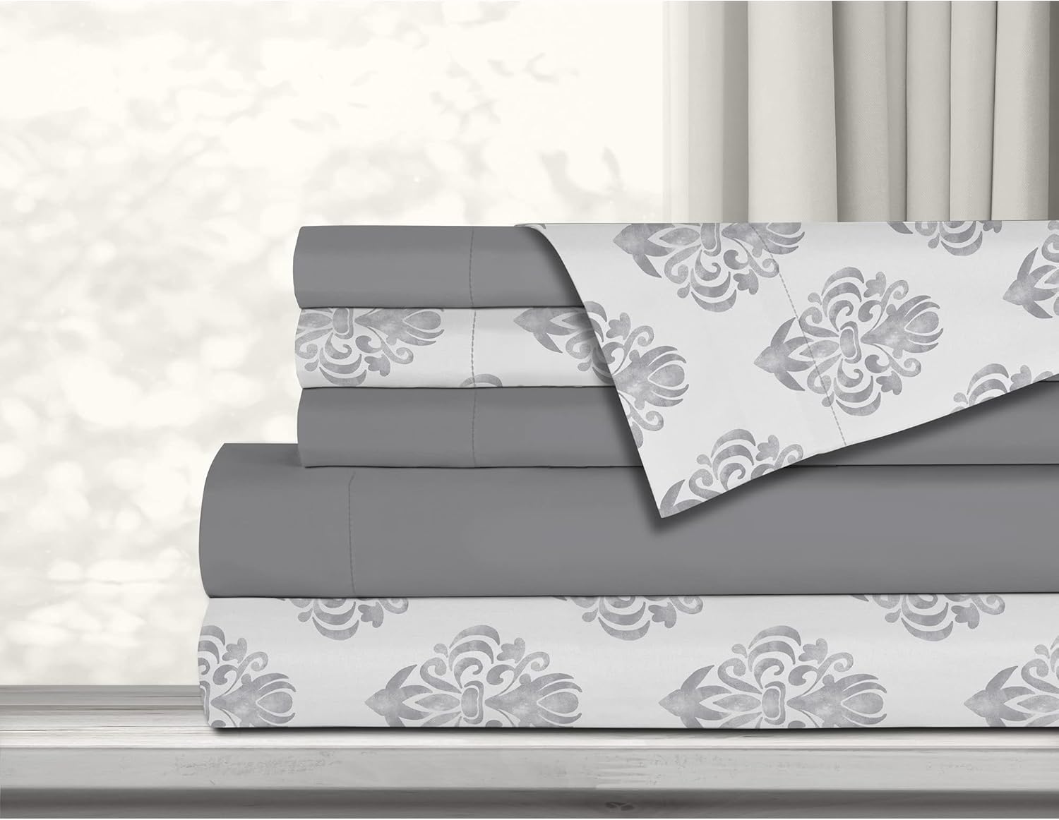 Bedding Bed Sheet 4 Piece Queen Breathable Hotel Cozy Comfy Hypoallergenic Antibacterial Microfiber – Deep Pockets – Wrinkle, Fade Shrinkage Resistant – Sheets & Pillowcases Grey