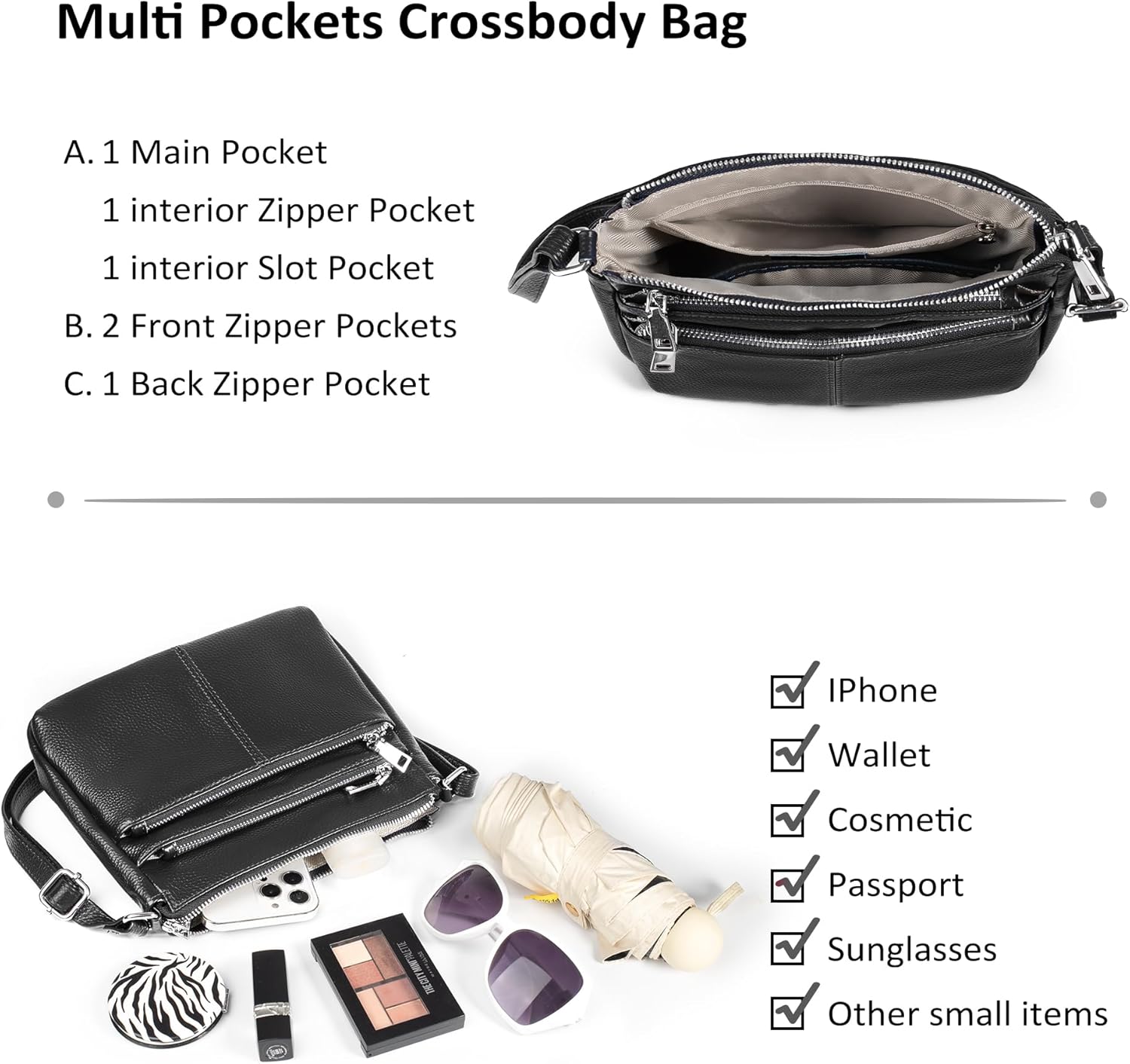 befen Genuine Leather Crossbody Purses Bags for Women, Small Pocketbooks Shoulder Bag Satchel Purse with Multi Pockets