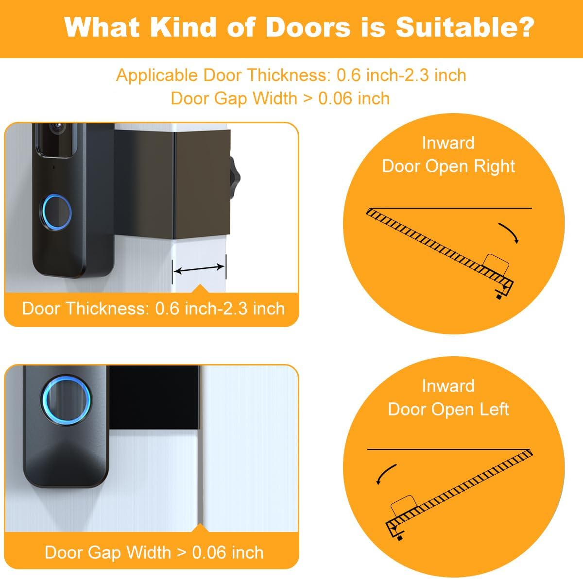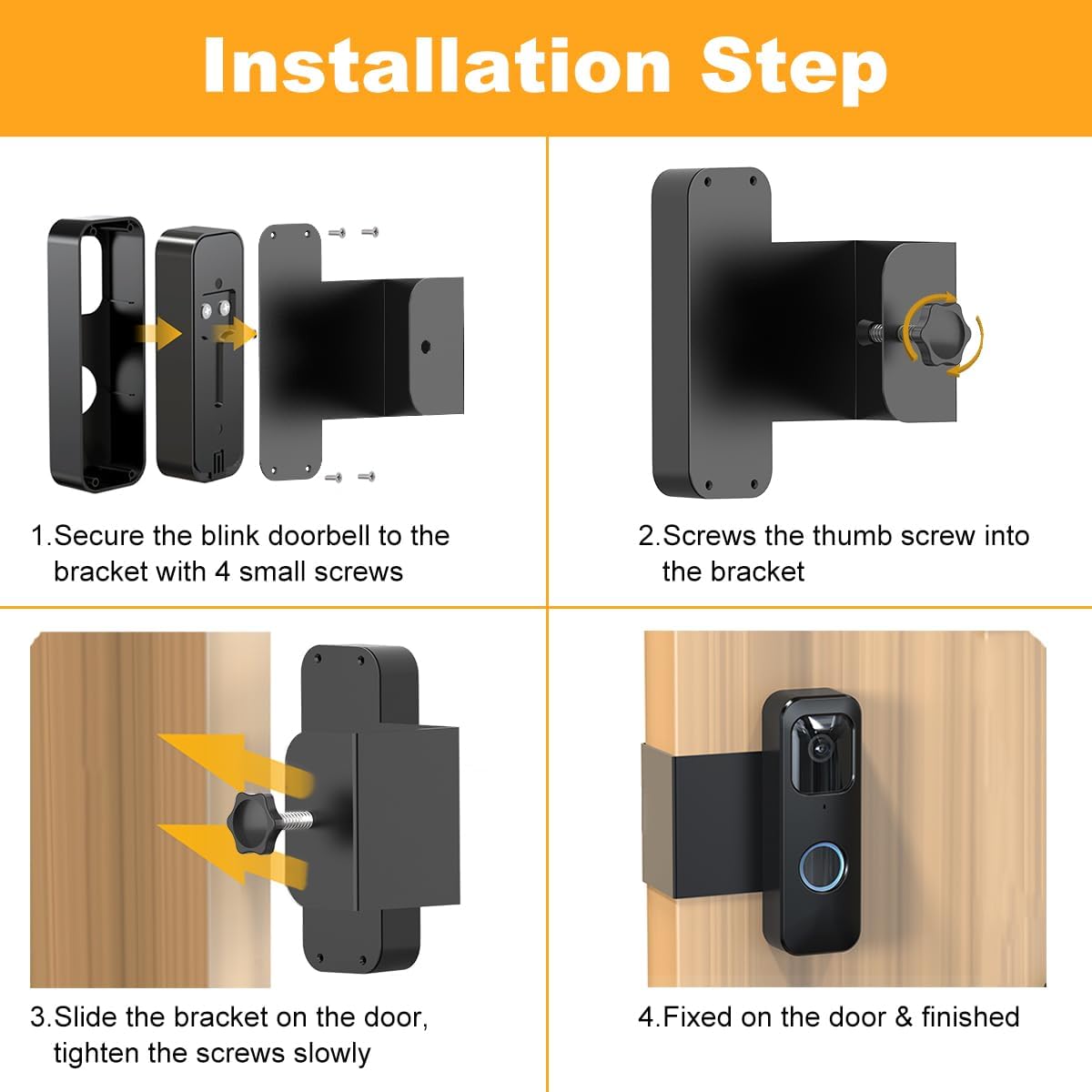 About this itemn[Anti-Theft Design] – Anti-theft doorbell mount compatible with Blink doorbell only, SENLEG encases your video doorbell securely, It cannot be removed from the side of your door unless the door is open. Perfect for apartments, offices, rentals and dormitories. (Not include Blink Doorbell)n[No Tools or Installation Required] – Attaches securely in seconds and easily installs and uninstalls. Simply place the Blink video doorbell inside and slide it over your front door, then adjust the fixed clip according to your door thickness.n[Applicable Doors] – Its most important thing to check your doors before ordering. The door must be inward swinging. Doors must be between 0.6