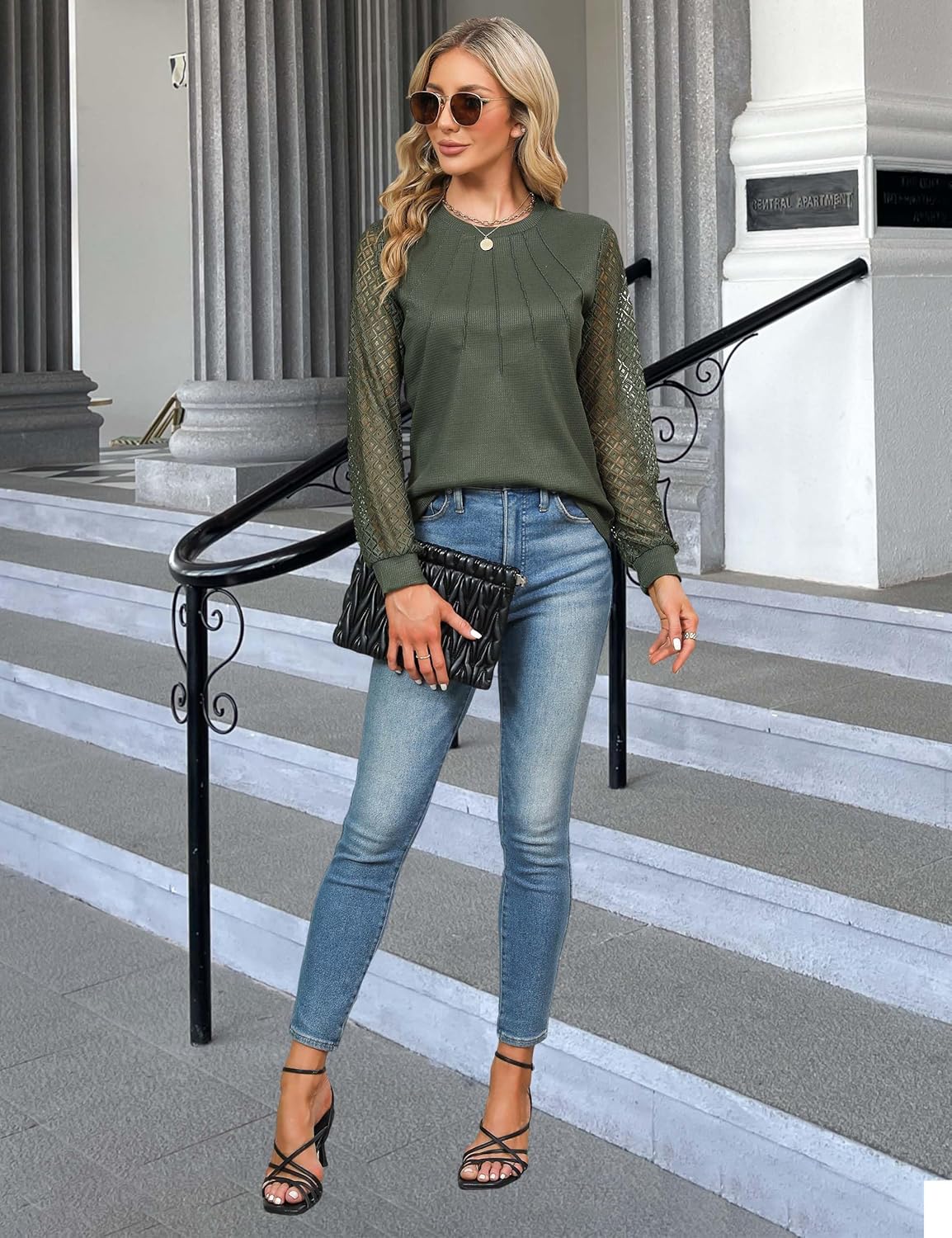 Blooming Jelly Women’s Waffle Knit Tops Dressy Business Casual Blouses Lace Long Sleeve Work Shirts Fall Clothes