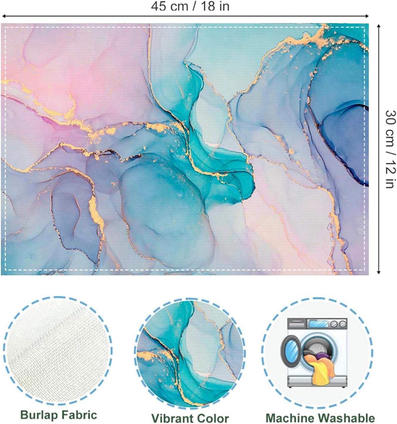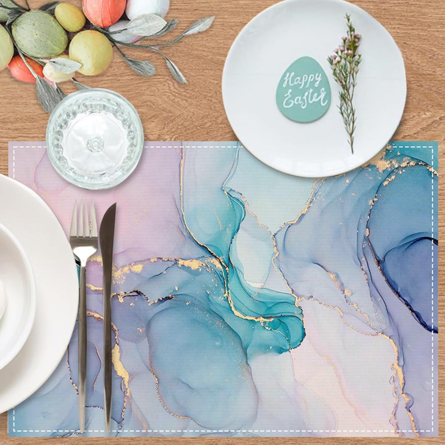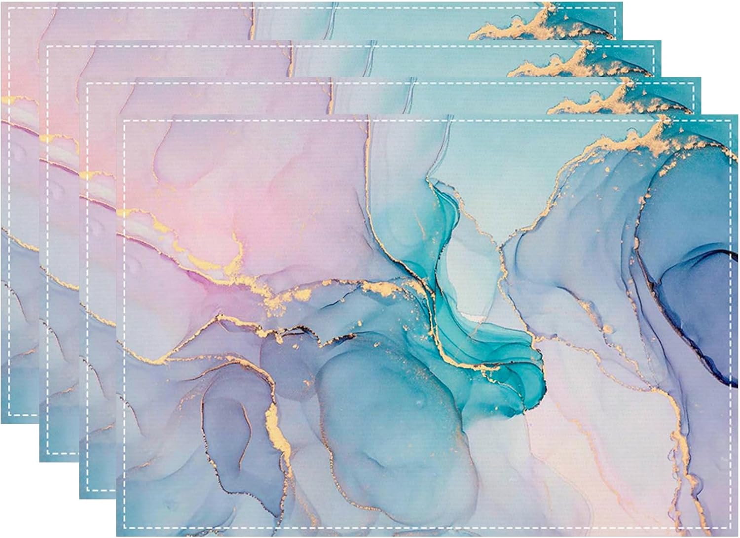 Blue Gold Marble Placemats Set of 4, 12×18 Inch Modern Abstract Painting Art Table Place Mats for Kitchen Dining Home Party Decor