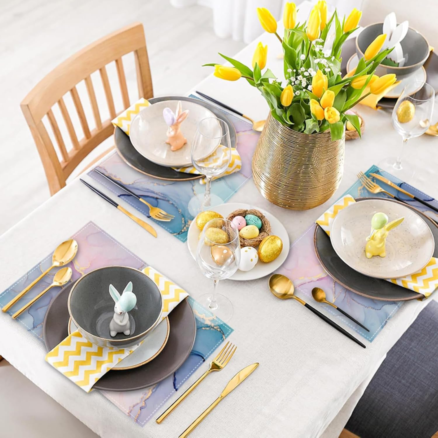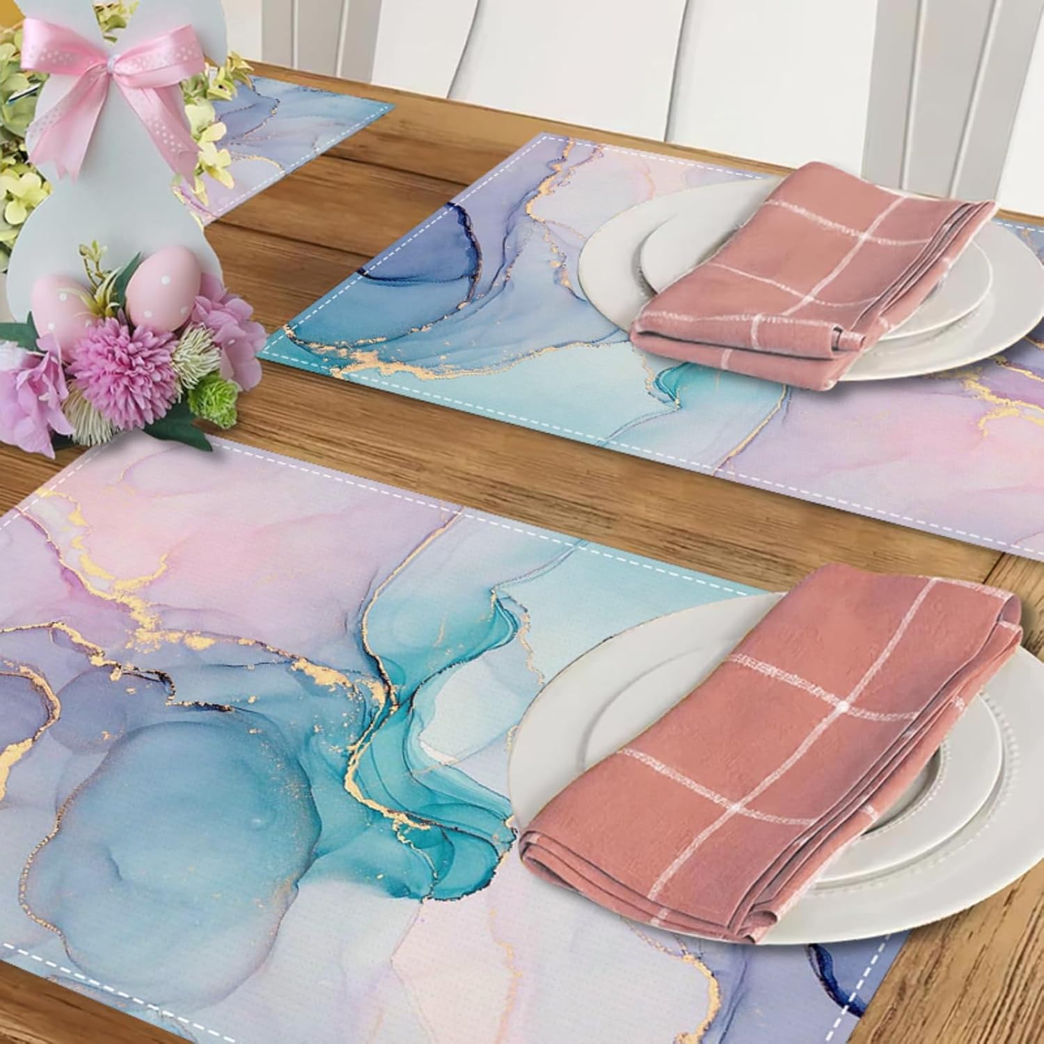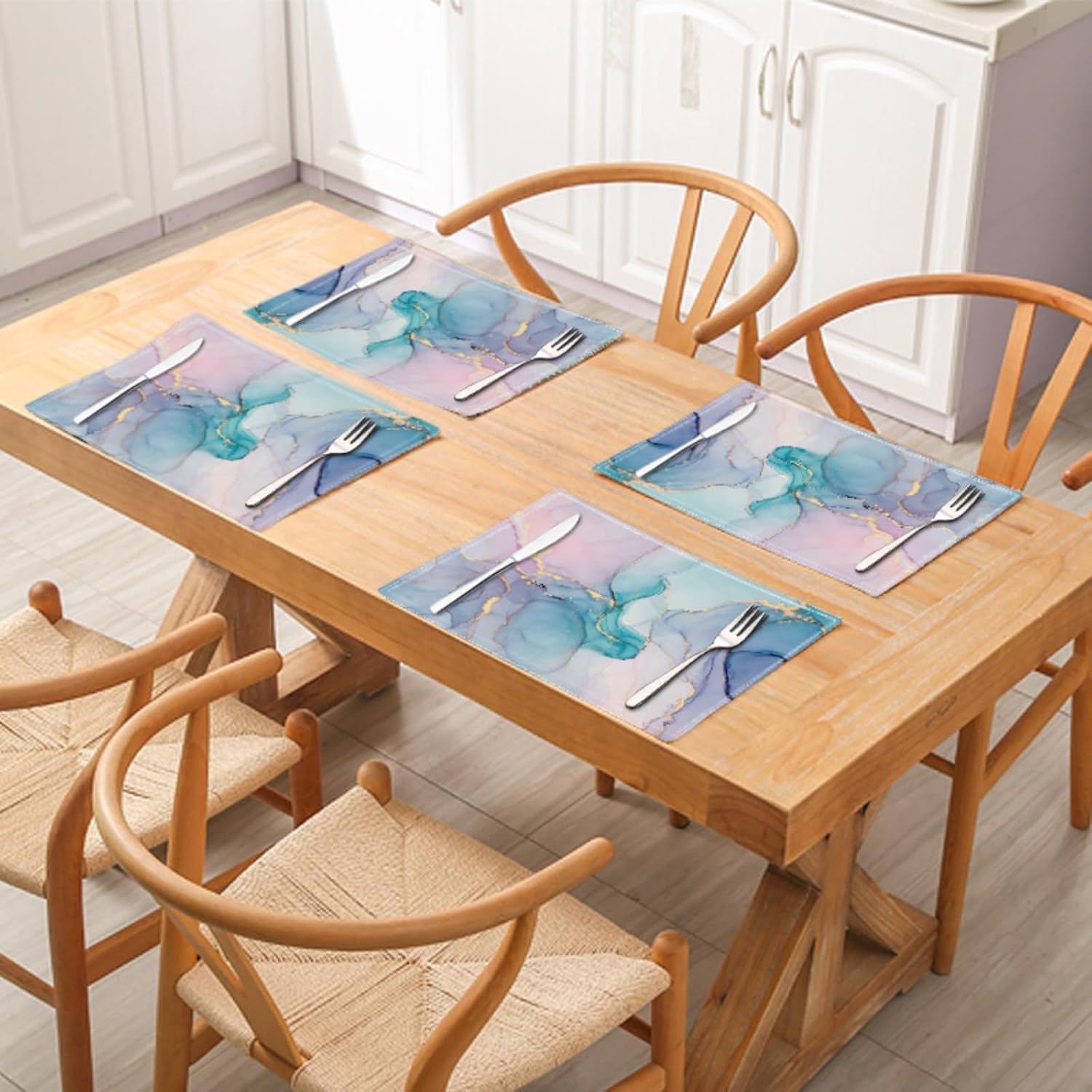 Blue Gold Marble Placemats Set of 4, 12×18 Inch Modern Abstract Painting Art Table Place Mats for Kitchen Dining Home Party Decor