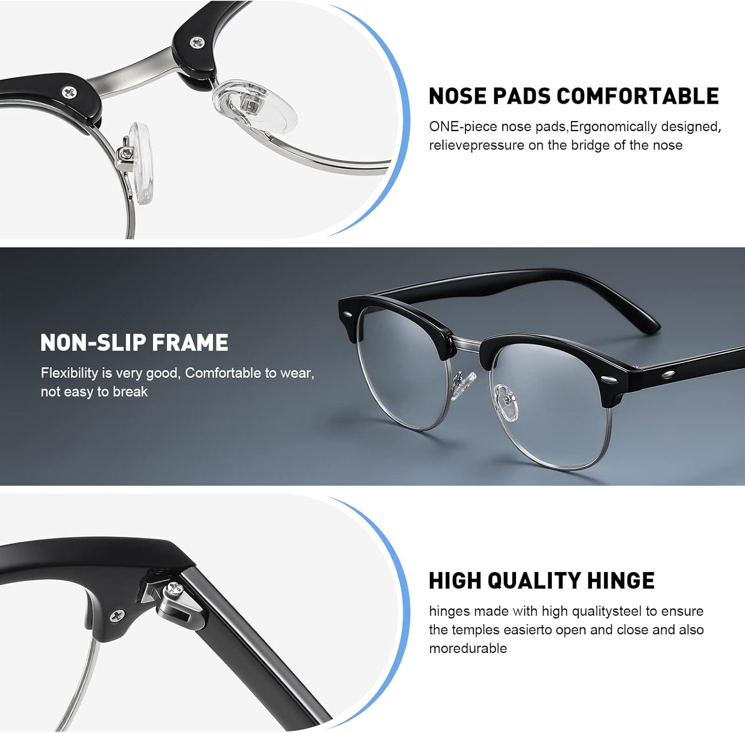 Blue Light Blocking Glasses Vintage Half Frame UV Clear Lens Anti Eyestrain Computer Gaming Glasses for Women Men