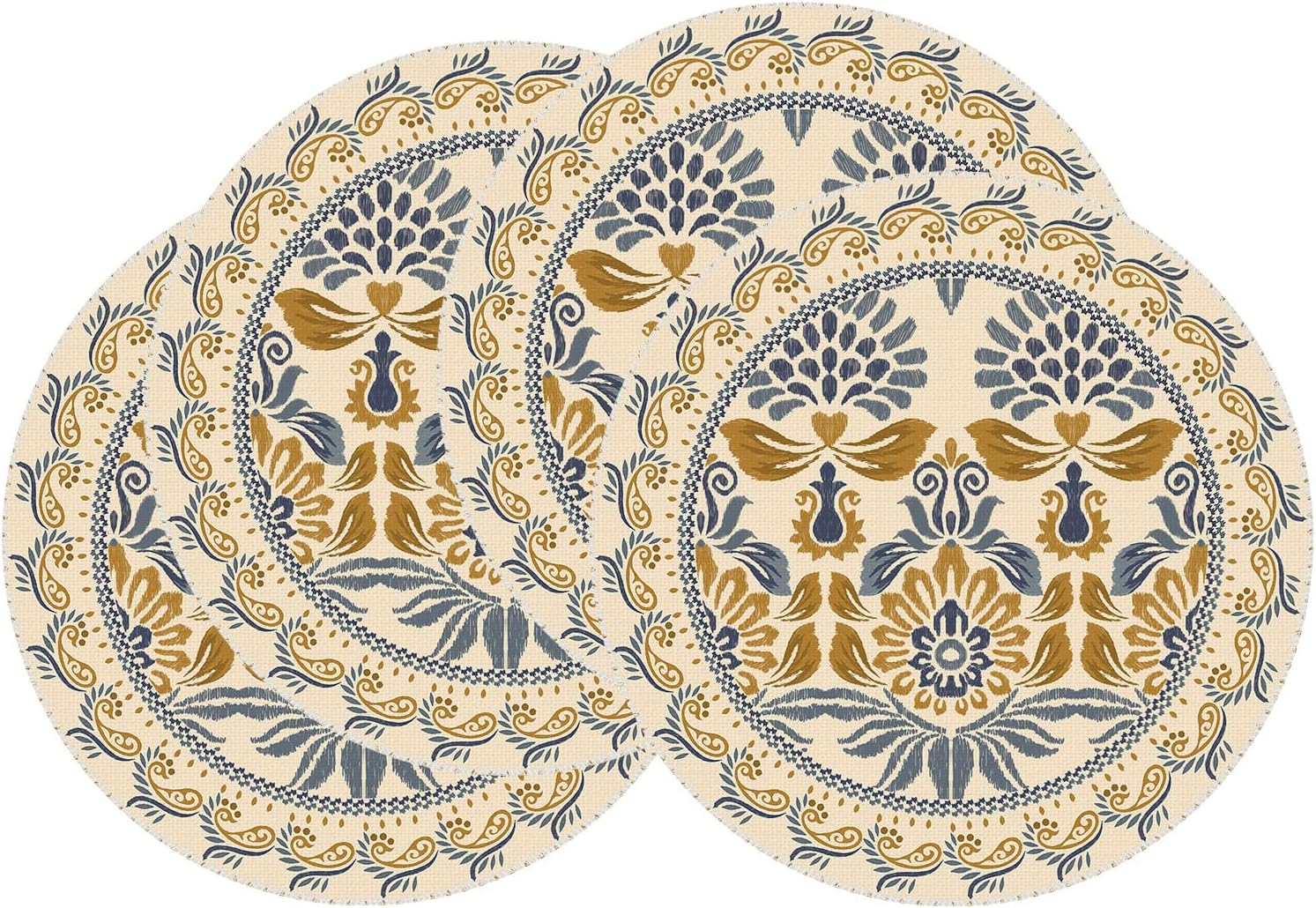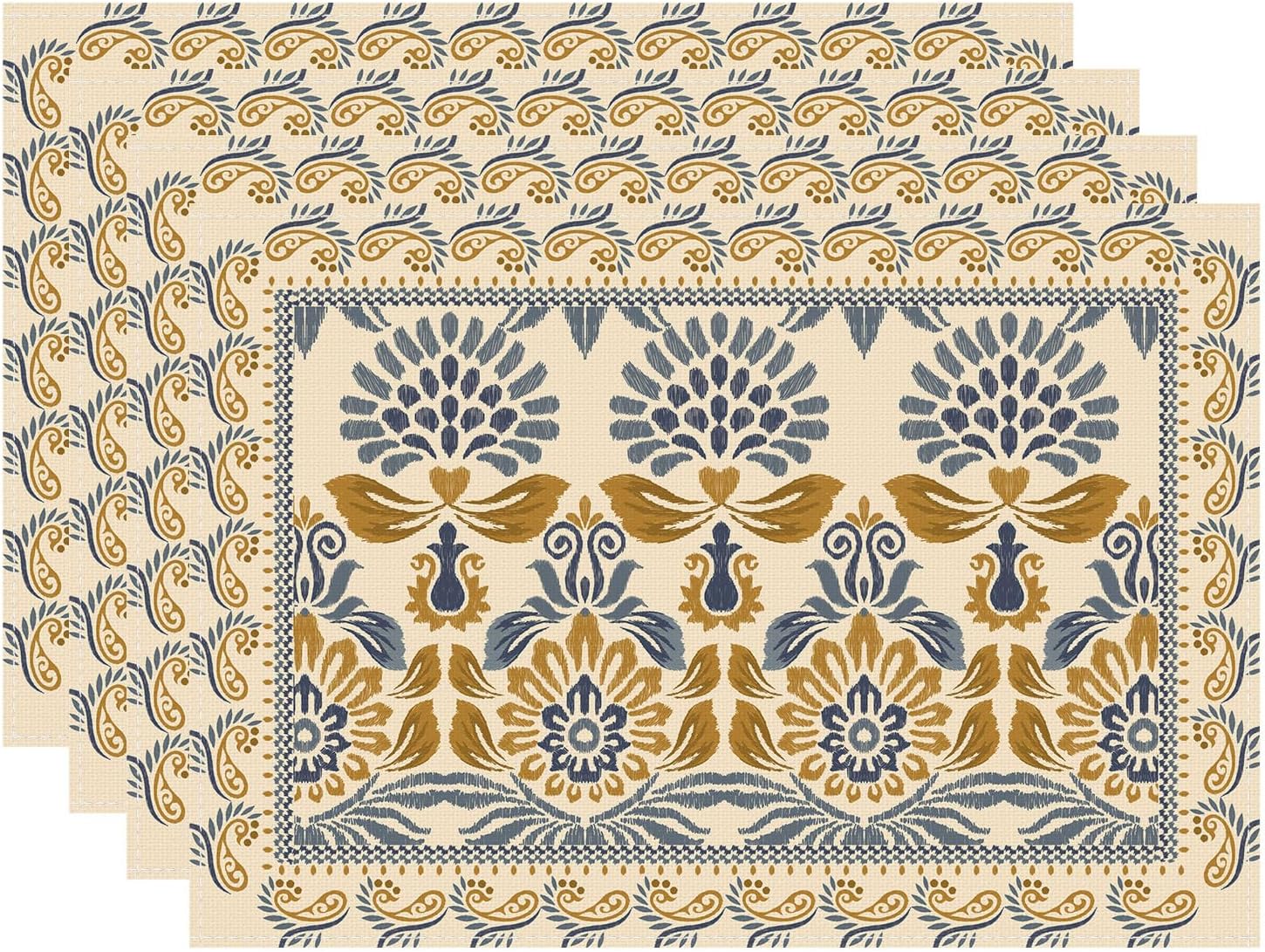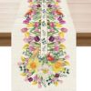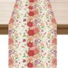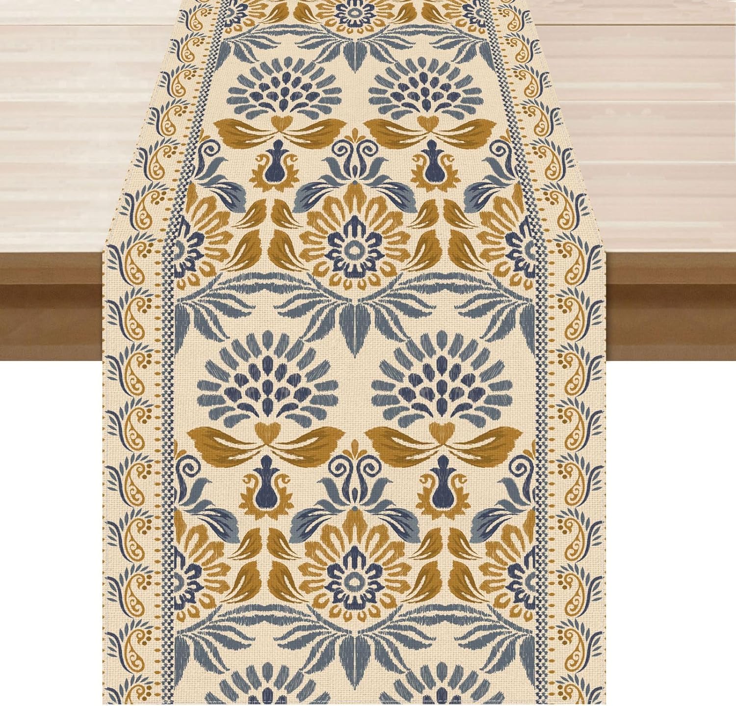 Boho Bohemia Style Blue Orange Flowers Table Runner Burlap Table Decoration for Home Kitchen Dining Dinner Indoor Holiday Farmhouse Decor 13×90 Inch