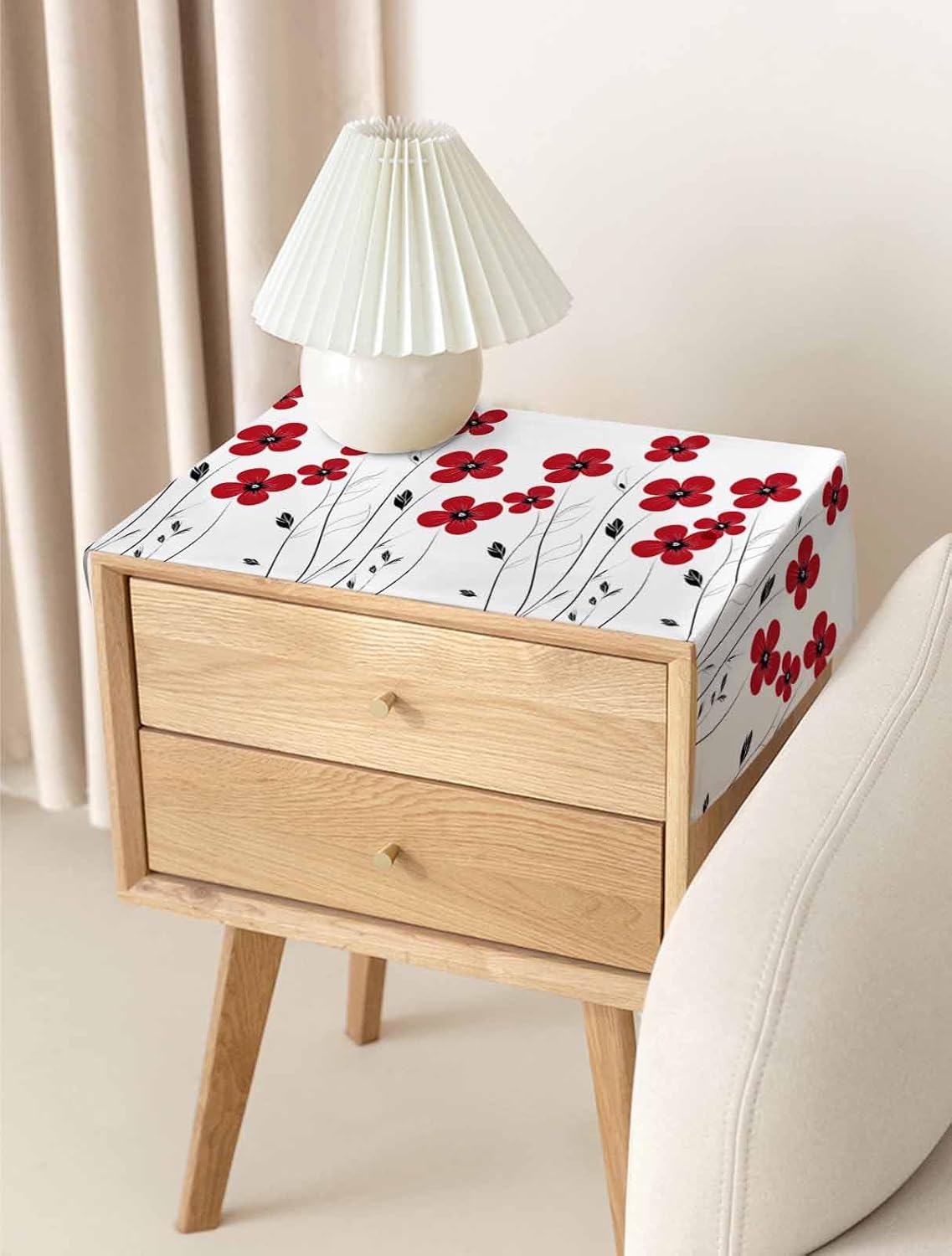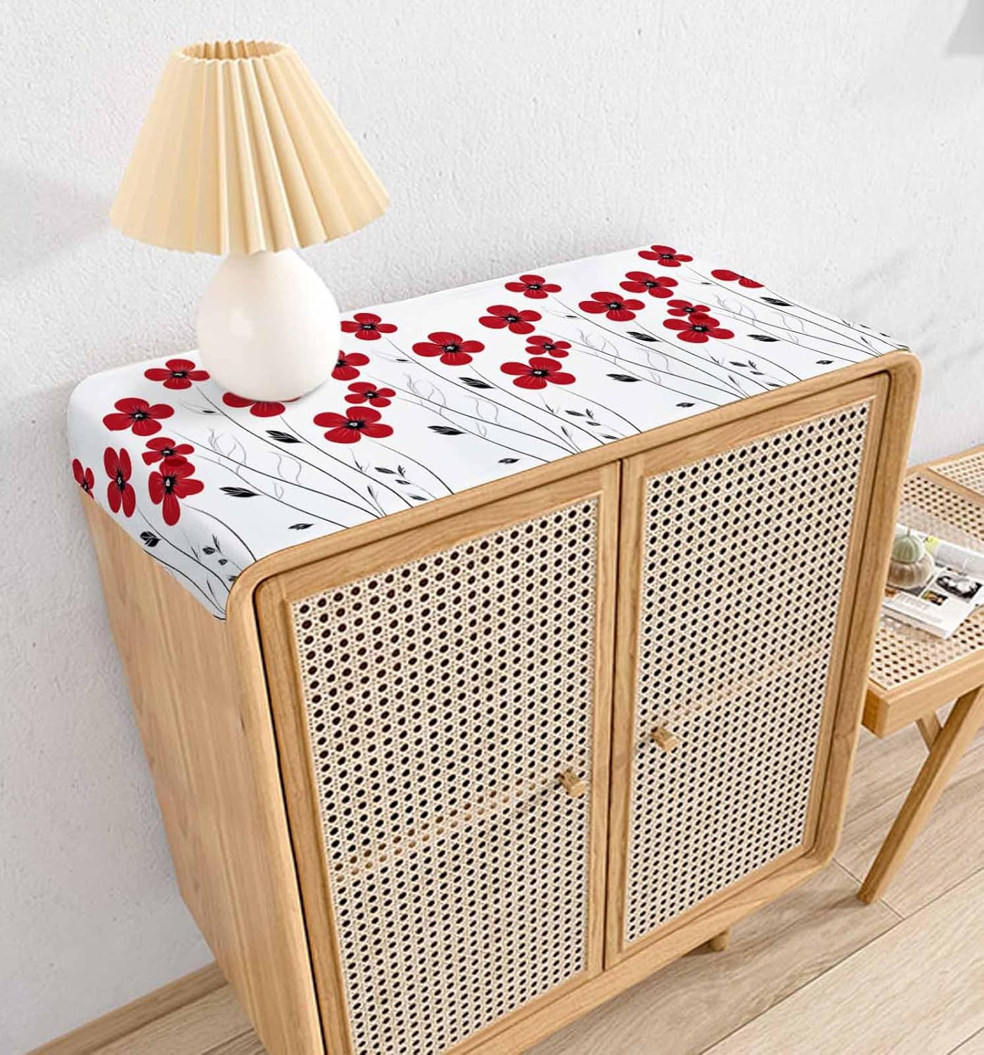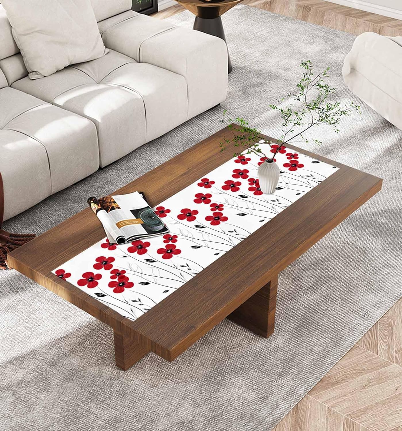 Boho Floral Table Runner 36 Inches Short, Red Flower Country Pastoral Nature Leaves Linen Small Kitchen Dining Coffee Table Runners Dresser Décor, Burlap Tabletop Runner for Table, Wedding, Party