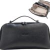 ?Premium Material?- The outer layer of leather toiletry bag is waterproof leather, fashionable and advanced. Matte nylon zipper head is strong and durable. Waterproof material inside the right compartment.n?Large Capacity?- Size: 11*11*5 IN. Middle area in large toiletry bag with extra large capacity can store full size bottles, internal elastic band to keep items upright and organized. A total of 7 zippered pockets, wet and dry to meet different item storage needs.n?Multiple Use Options?- Toiletry bag’s leather handle for easy carrying, removable shoulder straps can be used as a shoulder bag, the fixed design on the back can be easily hung on the suitcase handle, free your hands while traveling.n?Space Saving?- Hanging toiletry bag design with 360° rotatable metal hook , can be hung anywhere you need to hang, to achieve the purpose of space saving.n?Great Gift?- This is a cosmetic bag and toiletry bag combined into one stylish makeup bag, designed for women. It is the best choice to send to your spouse, friends.