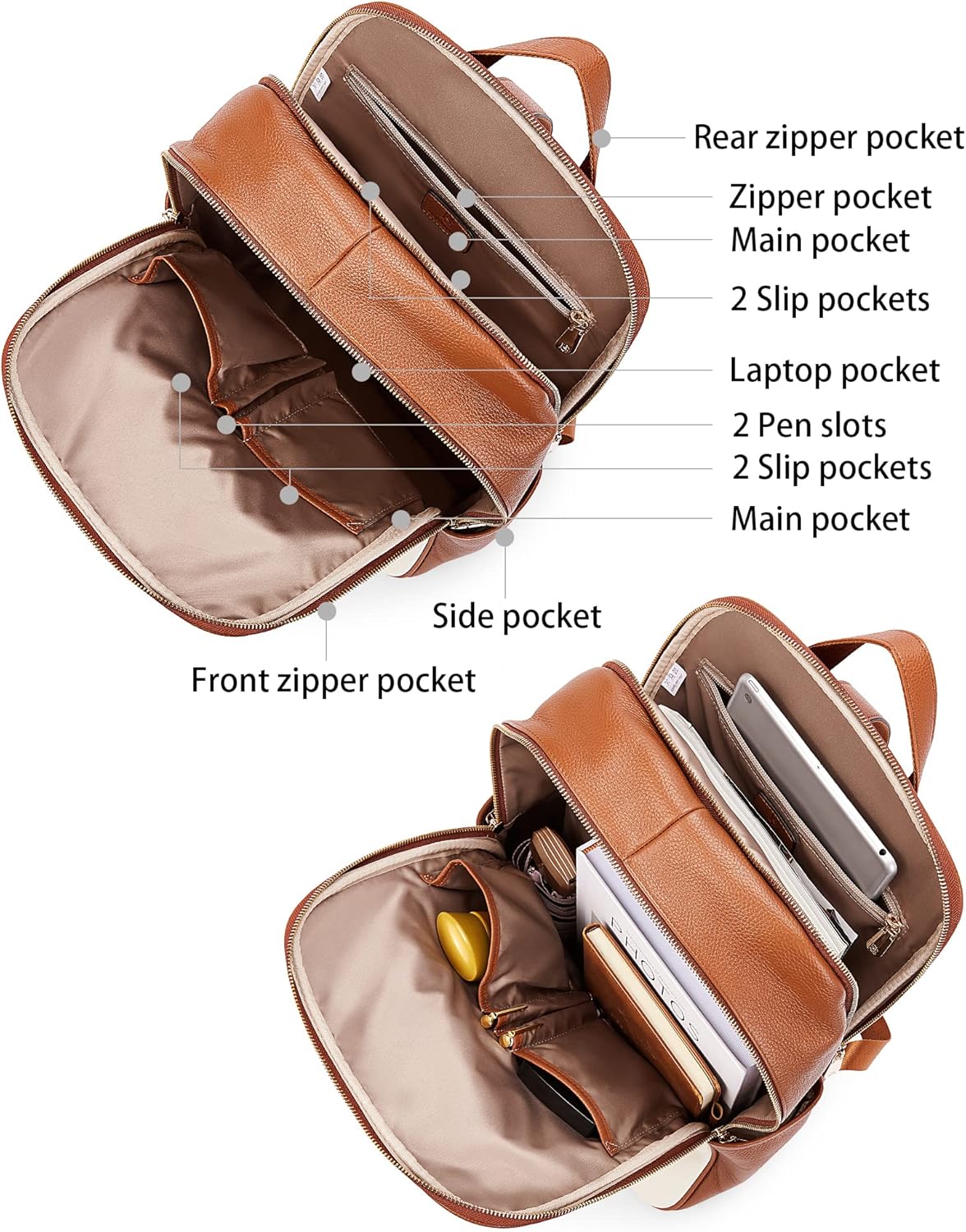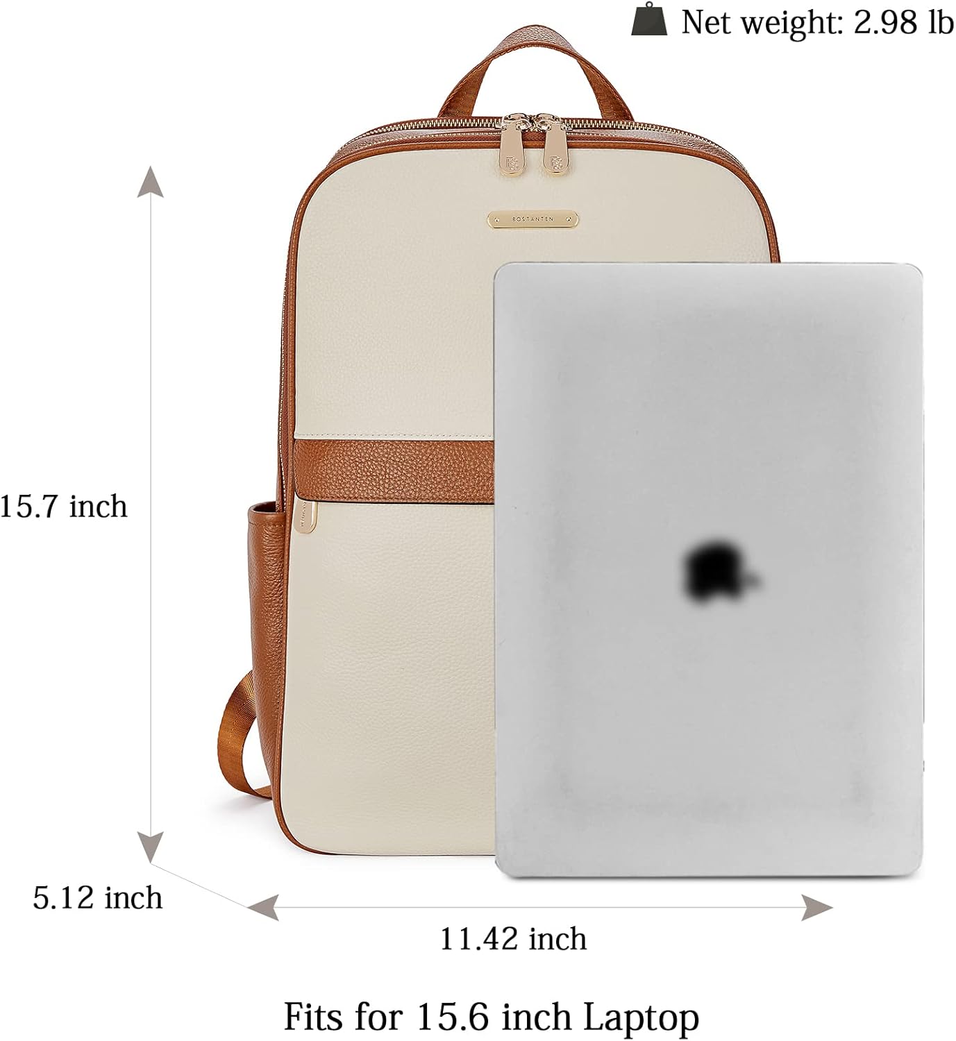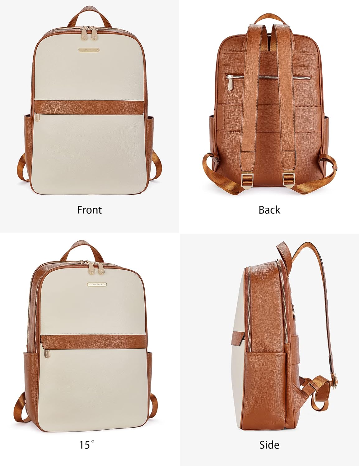 BOSTANTEN Genuine Leather 15.6 inch Laptop Backpack Purse for Women College Casual Backpack Travel Bag