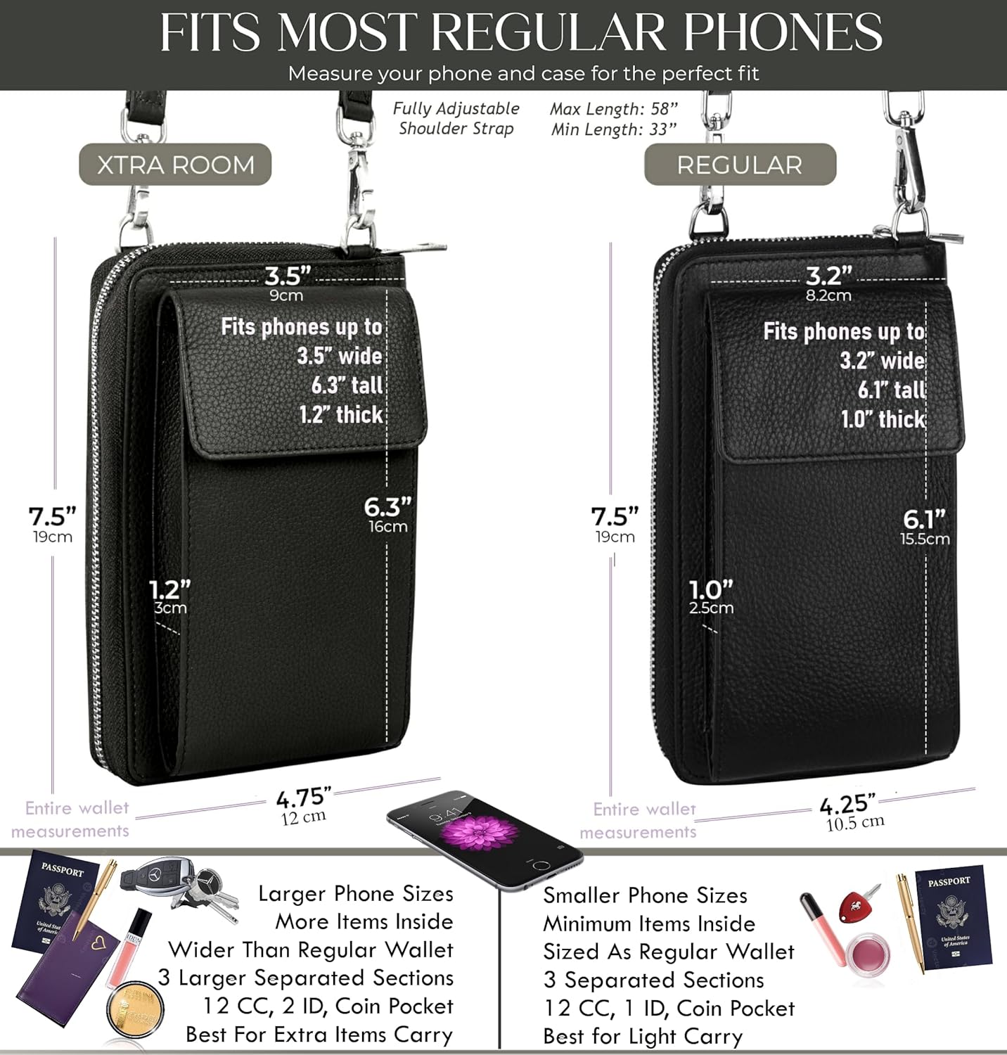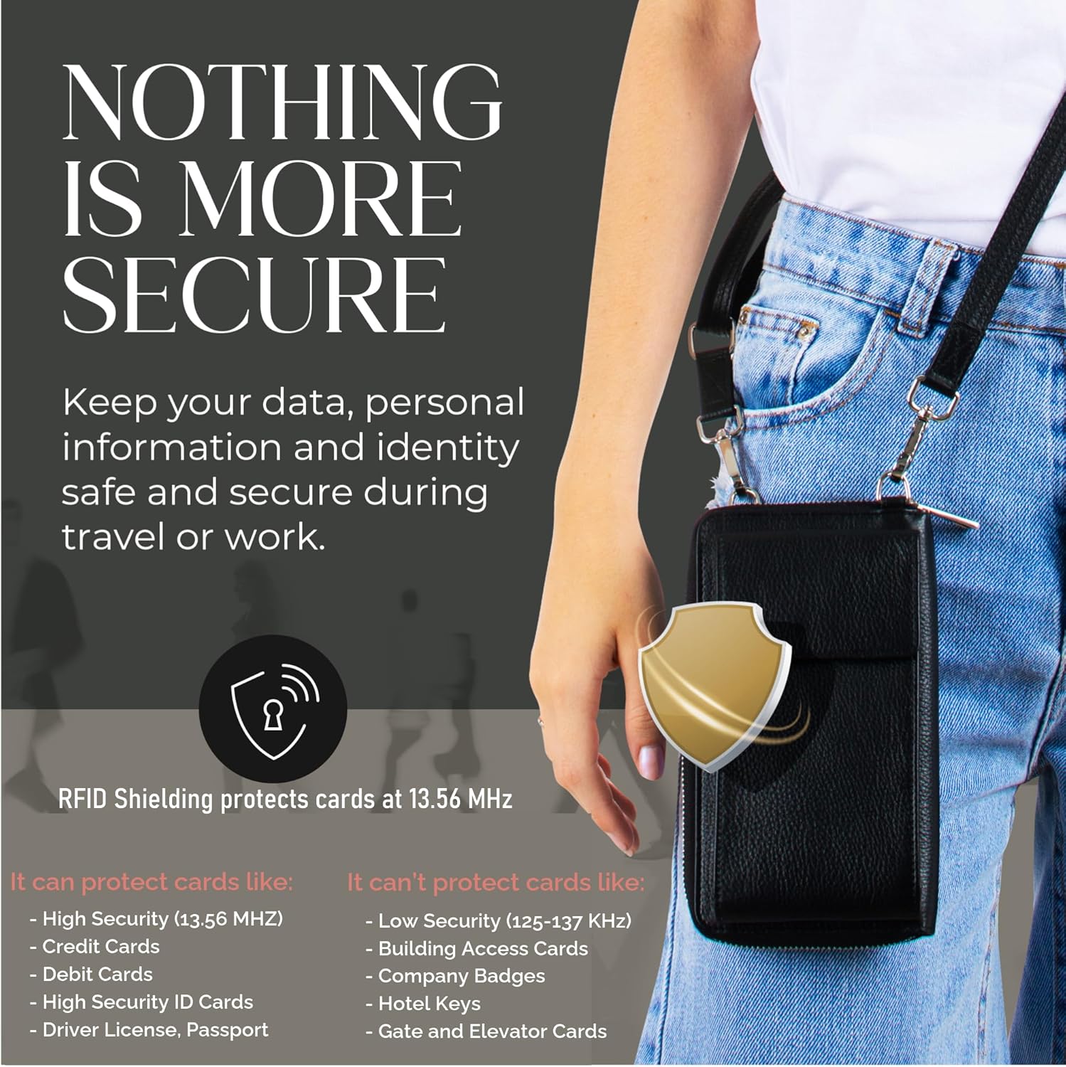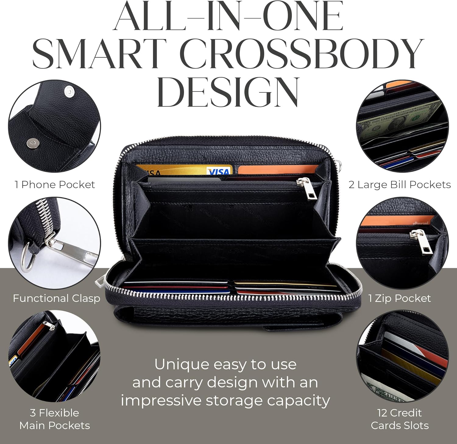 BULL GUARD Crossbody Leather Wallet Phone Purse, Anti Theft and RFID Blocking, Small Elegant Design for Travel