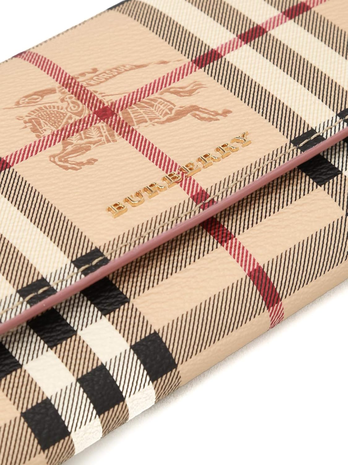 About this itemnHaymarket Check Coated Canvas with Calf Leather TrimnInterior bill slots, interior zip compartment, eight card slotsnApproximate measurement 7.25