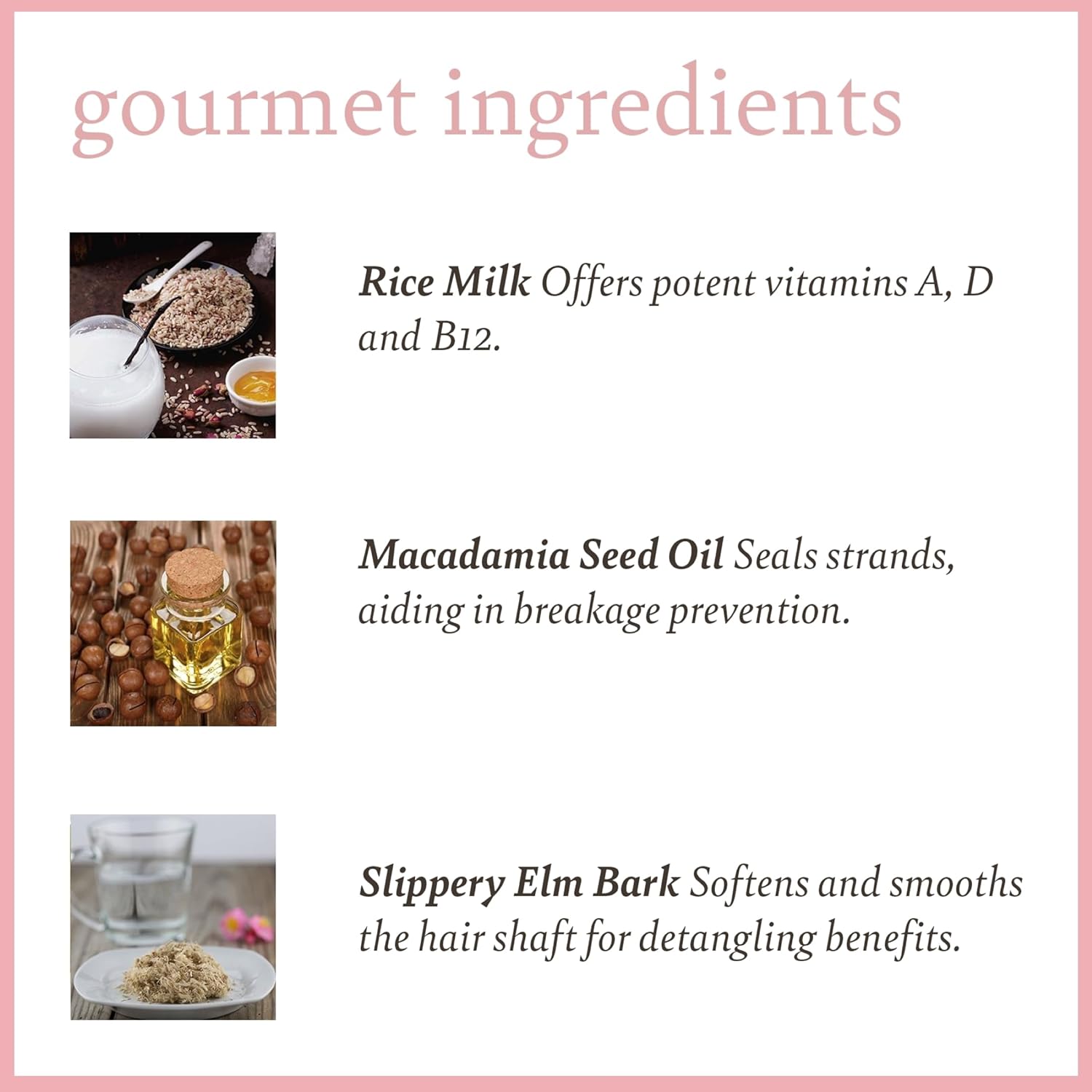 About this itemnNourishing Detangler: A softening leave-in conditioning cream infused with Slippery Elm Bark to detangle and smooth the hair shaft, while a blend of rice milk and macadamia nut oil nourishes and promotes healthy hair growth.nMoisture Boost: Formulated with natural ingredients like avocado oil, green tea extract, and a light vanilla aroma, this leave-in conditioner deeply hydrates and refreshes dry, thirsty strands.nVersatile Application: Suitable for all hair types, this multi-purpose product can be applied on wet hair after washing or used to revive and moisturize dry styles that need a boost.