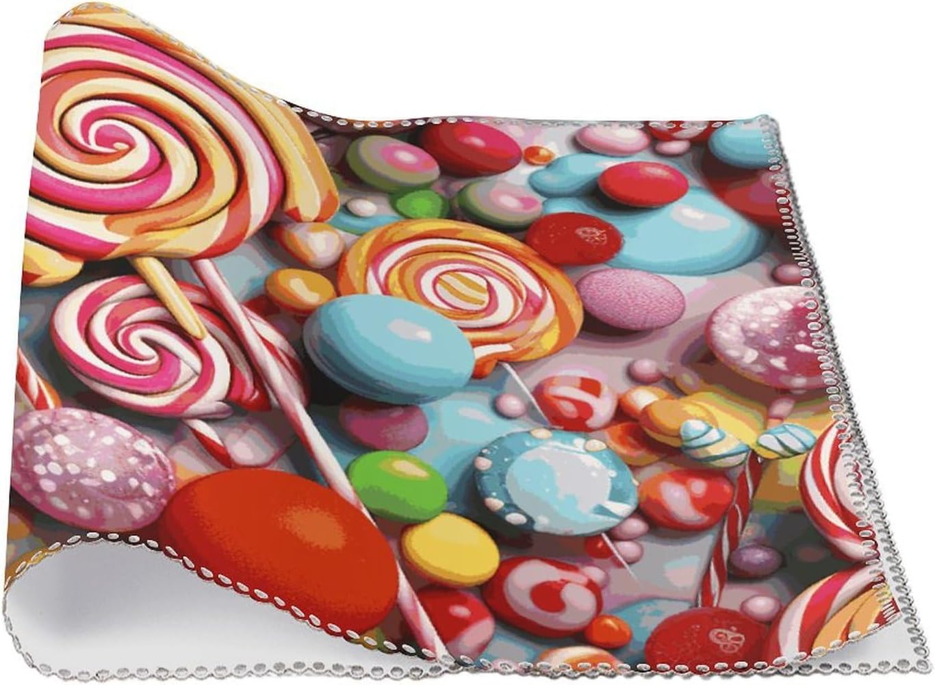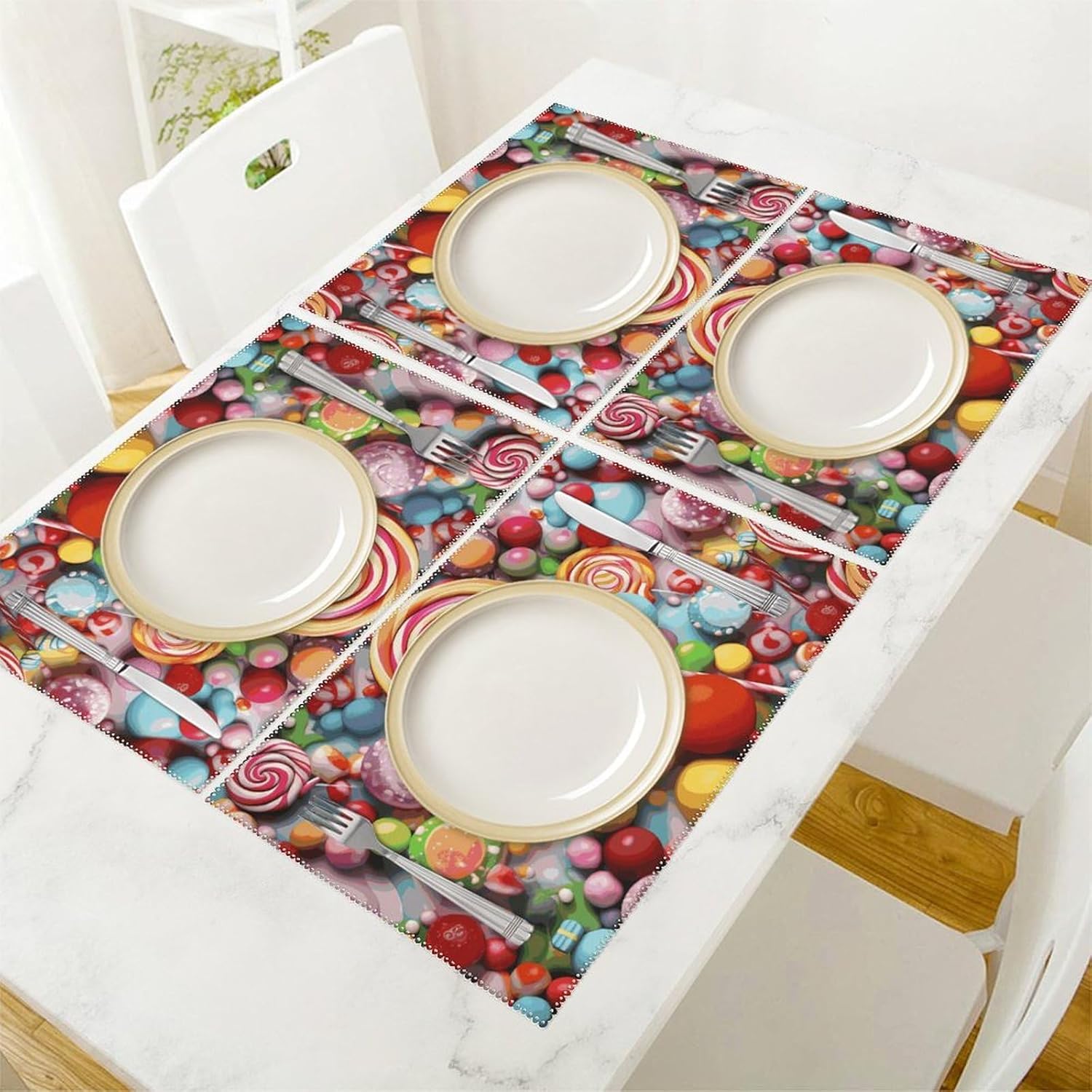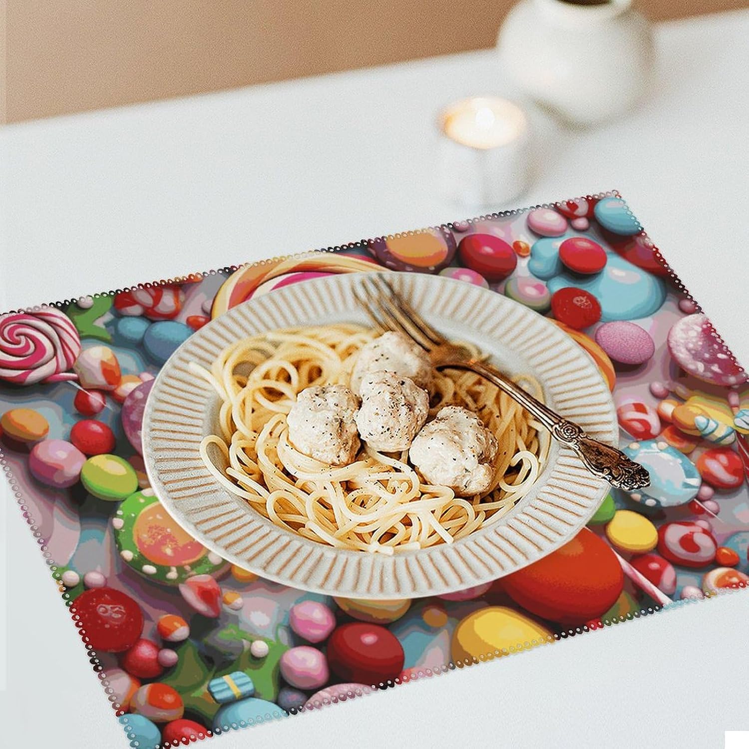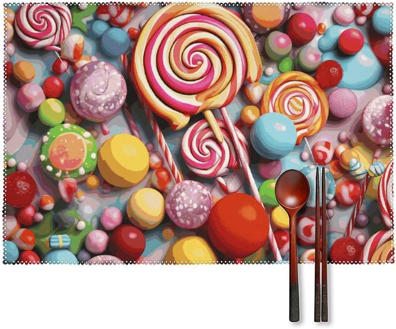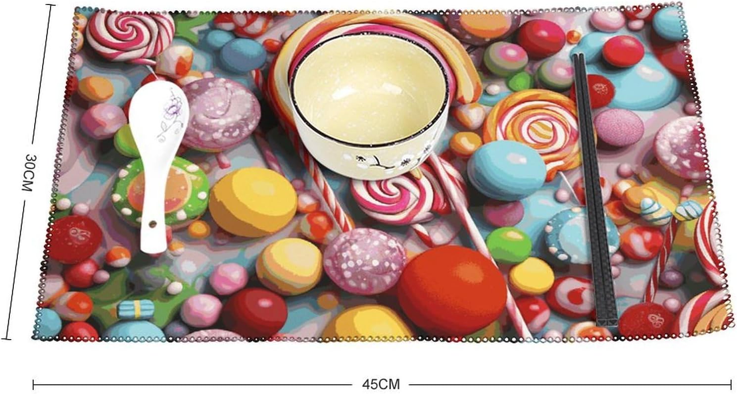 Candy Placemats Set 4 Heat Resistant Place Mats Non-Slip Washable Indoor Outdoor Table Mats Table Mats for Dining Kitchen Party Measures 17.7 X 11.8Inch