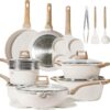 CAROTE 12 Pieces Kitchen Knife Set, Stainless Steel Knife Set With Nonstick Ceramic Coating, Dishwasher Safe with 6 Blade Guards, Rustproof, Brown