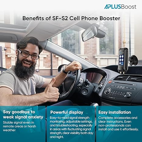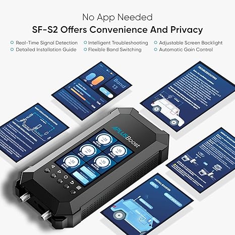 - ?Smart HD Display?No additional apps are required, ensuring full privacy protection. Cell phone booster for SUV is powerful and equipped with real-time monitoring of indoor and outdoor signal strength. It also includes practical features like an installation guide, frequency band switch, backlight adjustment, and troubleshooting.
