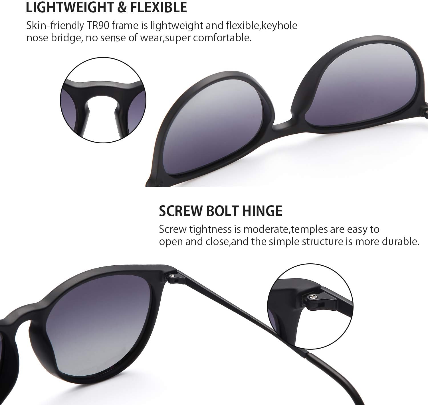 n? HIGH STABILITY FRAMES ?The TR90 Frame is made from Lightweight Yet Strong Special Material Construction, Which is Lighter, More Flexible, and more stable than Ordinary Frames, and can Reduce the Pressure on your Nose. We Picked Ultra-light Materials for Glasses Frame, Shatterproof Polarized Lenses and We Took Care so that every Edge is Smoothed and Polished so you’ll even Forget that you Wear them out in the Sun