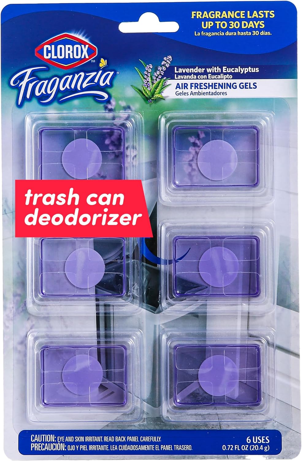 Clorox Fraganzia Adhesive Garbage Can Air Freshener Gel, Lavender with Eucalyptus Scent – No Plug, Stick On Trash Can Deodorizer and Odor Absorber, Gel Air Fresheners for Home and Kitchen, 6 Count
