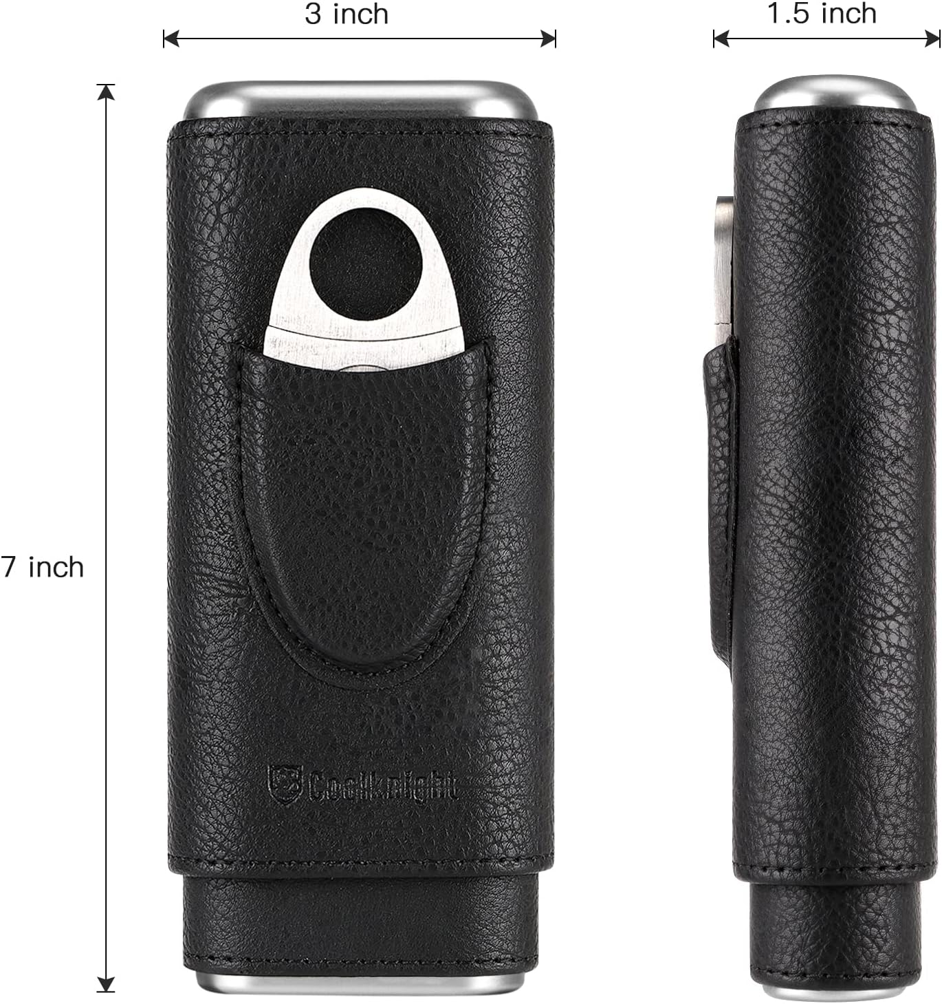 COOL KNIGHT Leather Cigar Case – Cedar Wood Lining Travel Humidors for Cigars – Cigar Accessories Include Stainless Steel Cigar Cutter – Cigar Gift Box for Cigar Lovers (Black)