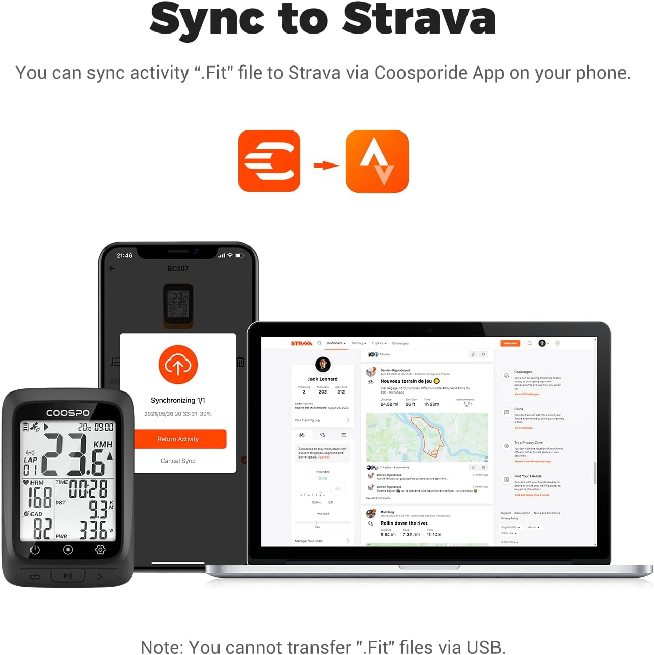 About this itemnAccurate GPS Positioning: Coospo’s new GPS bike computer has 2 modes of global positioning, which can provide accurate GPS data all over the world. Attention: First-time positioning will take 3-5 minutes, please make sure you are outdoors.nBike Computer ANT+?Coospo cycling GPS computer can support heart rate monitor, speed and cadence sensor, and power meter connection through ANT+, All cycling data you will get if the sensor connection with bike computer.nBluetooth APP Connection: By using the CoospoRide App, you can set bike computer very easily on your phone, such as: quickly connecting and easily set the device, loading the GPS track route map, recording and analyzing cycling activity records, updating the latest firmware and so on.nSync Activity(.fit file) to Strava: You can also sync activity(.fit file) to Strava via the Coosporide App on your phone by Bluetooth directly. The CooSpo bike computer can record 80 hours of your riding data.n2.4-inch Screen with Auto Backlight: 2.4-inch segment code FSTN glass screen, sunlight-readable display, automatically sensing the environment to turn on the backlight. It is a screen thats ready for any adventure.nIP67 Waterproof: IP67 waterproof protection allows bike computers work normally in rainy day. You can go your riding in Rainy and Sunny day.n?12 Months Policy & Professional Technical Support: You can feel free to contact with us for any problems and help needed, CooSpo team will give you a satisfactory solution.